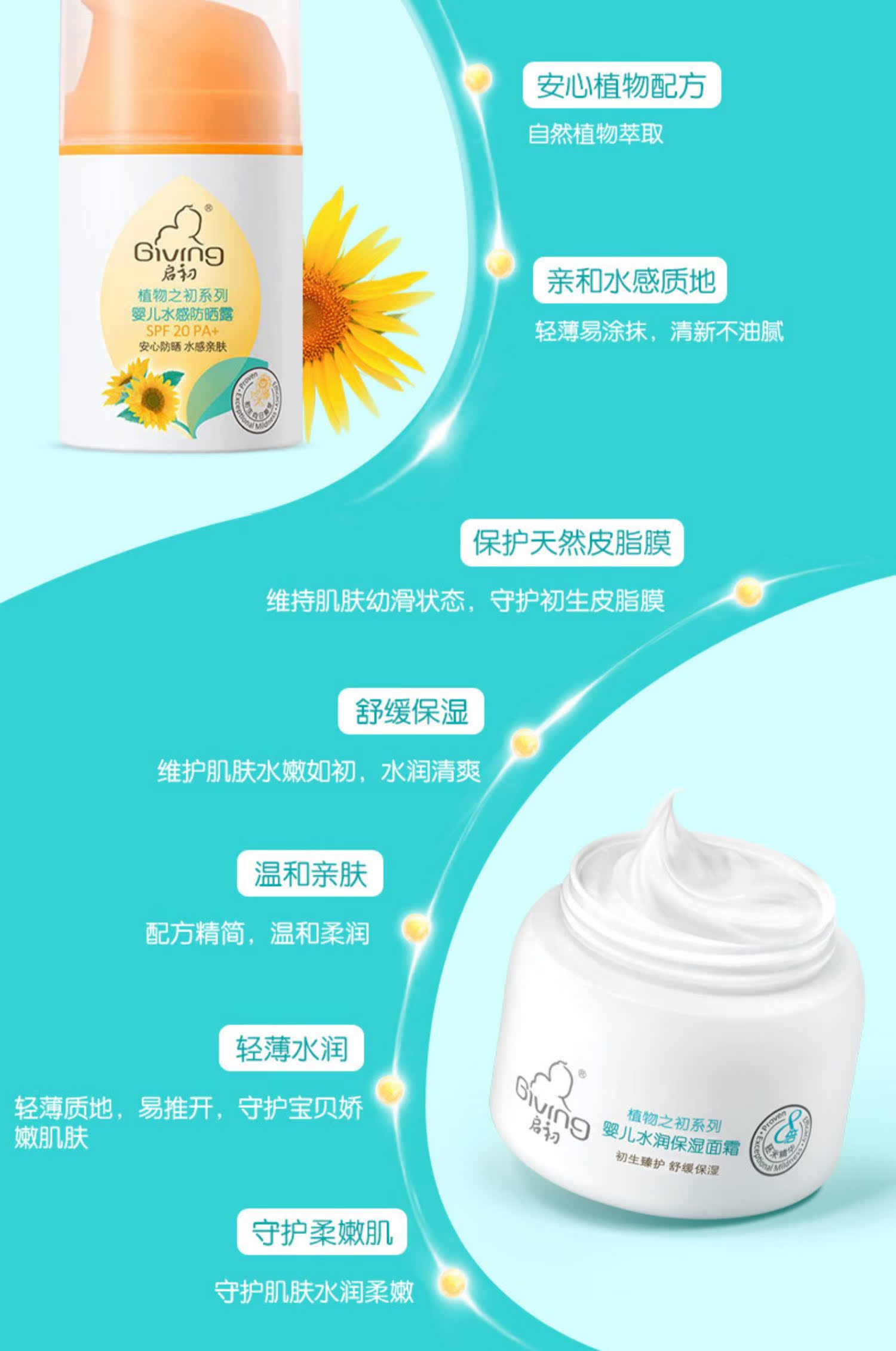 啟初水潤防曬露面霜護膚套裝 兒童面部補水保濕露 寶寶嬰兒潤膚乳
