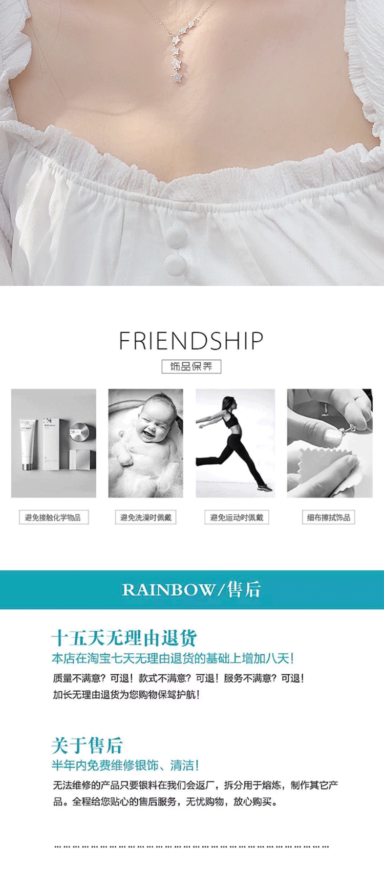 999女925吊墜鏈條鎖骨素純銀項鏈