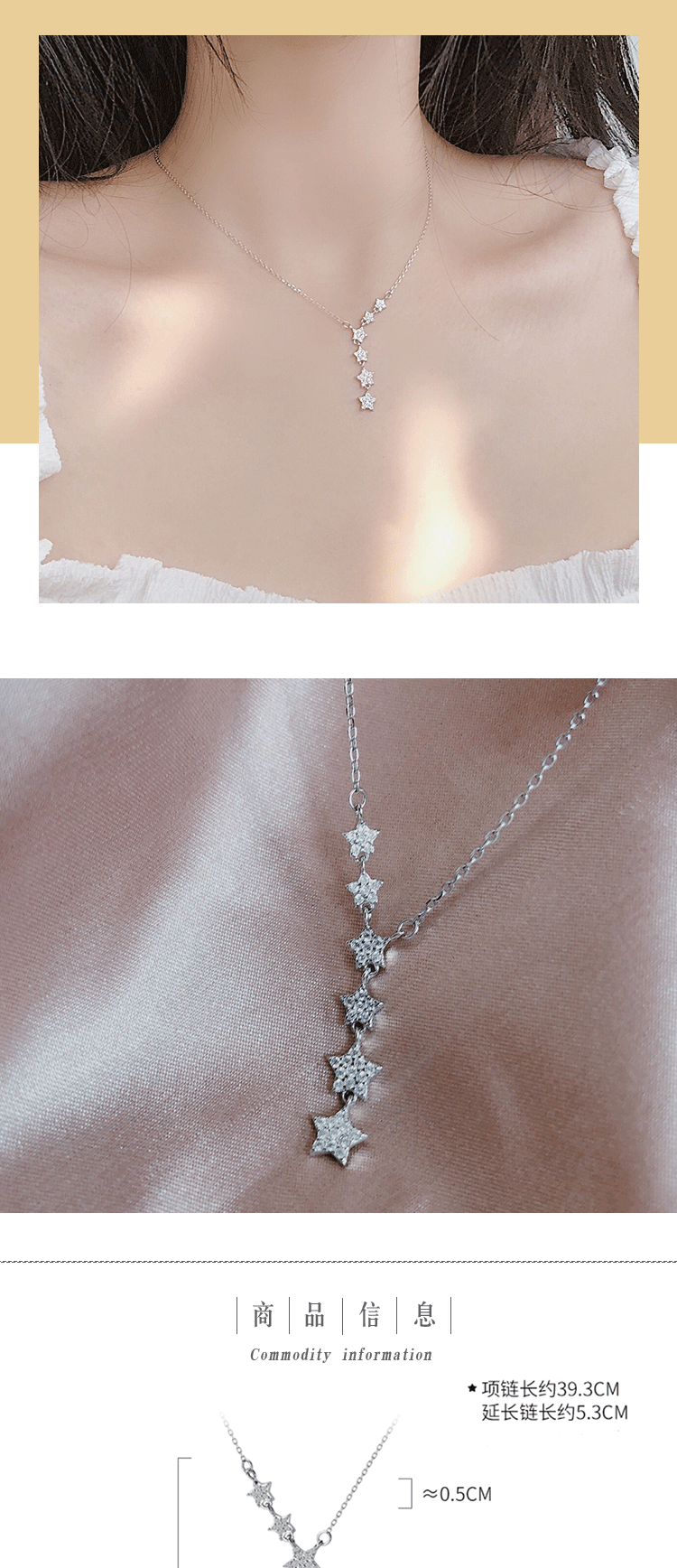 925純銀鑲鉆五角星星Y型項鏈女深V鎖骨鏈網紅氣質百搭創意頸鏈女