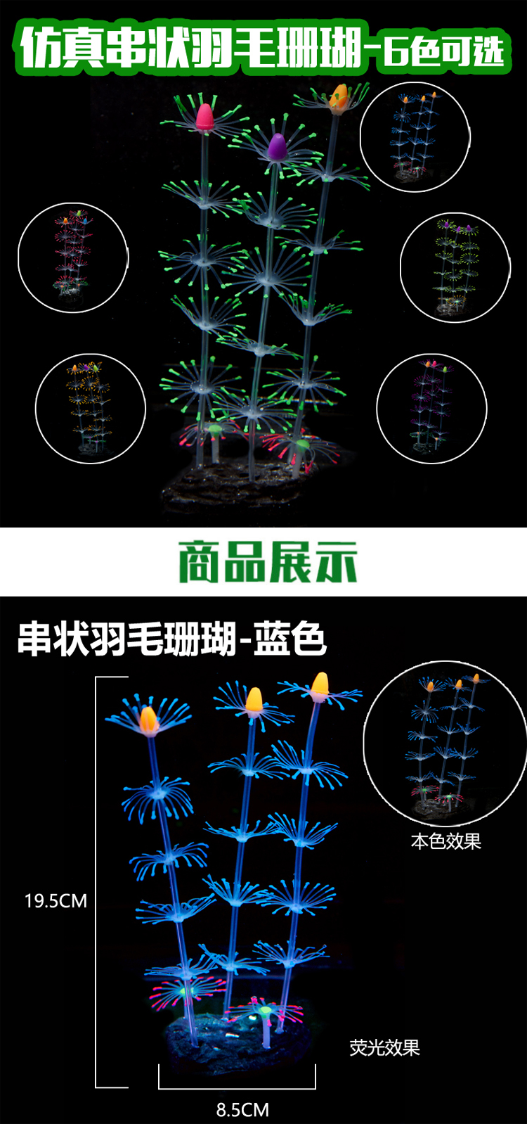 此款產品是熒光制品,需要搭配熒光燈,藍光、紫紅燈這些效果更佳
