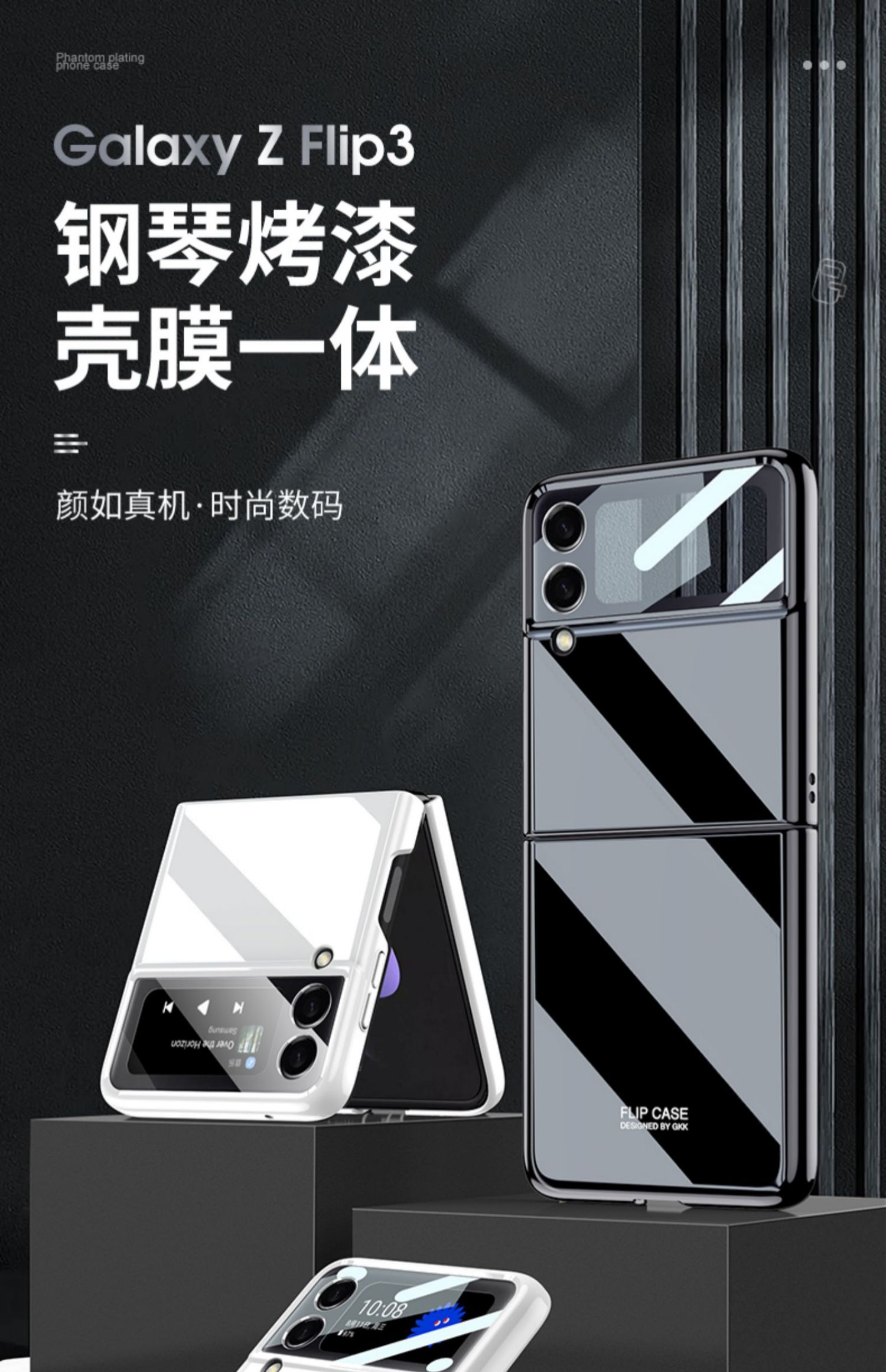 適用三星zflip3手機殼flip3折疊烤瓷韓國Galaxy z flip3折疊屏5g女網紅電鍍男款全包sm-f7110潮保護套超薄女