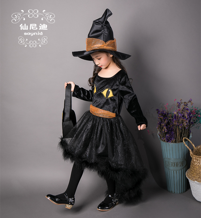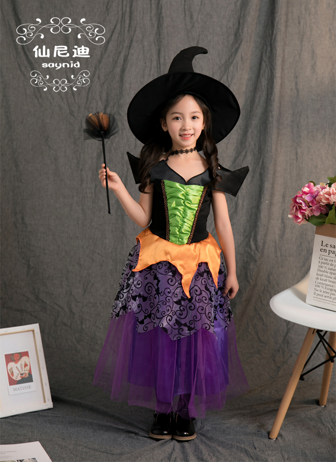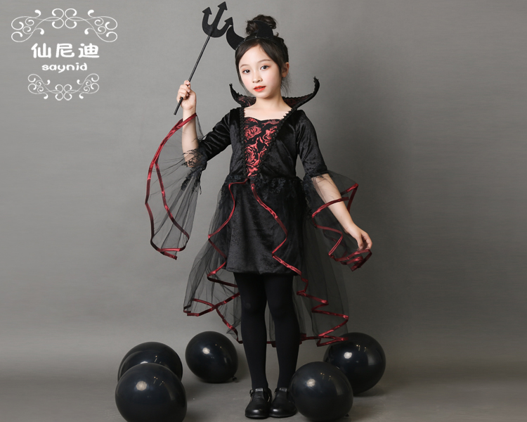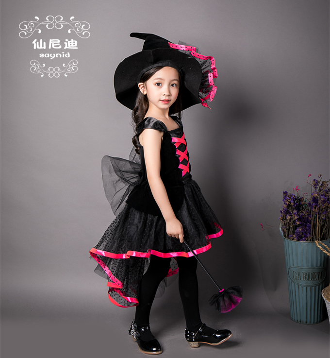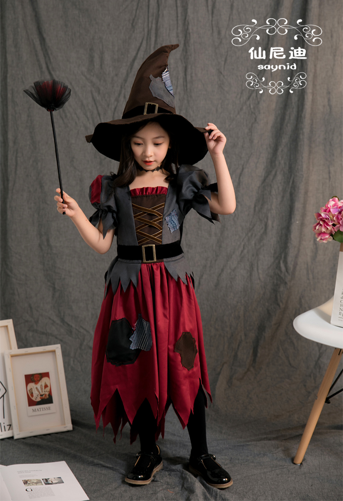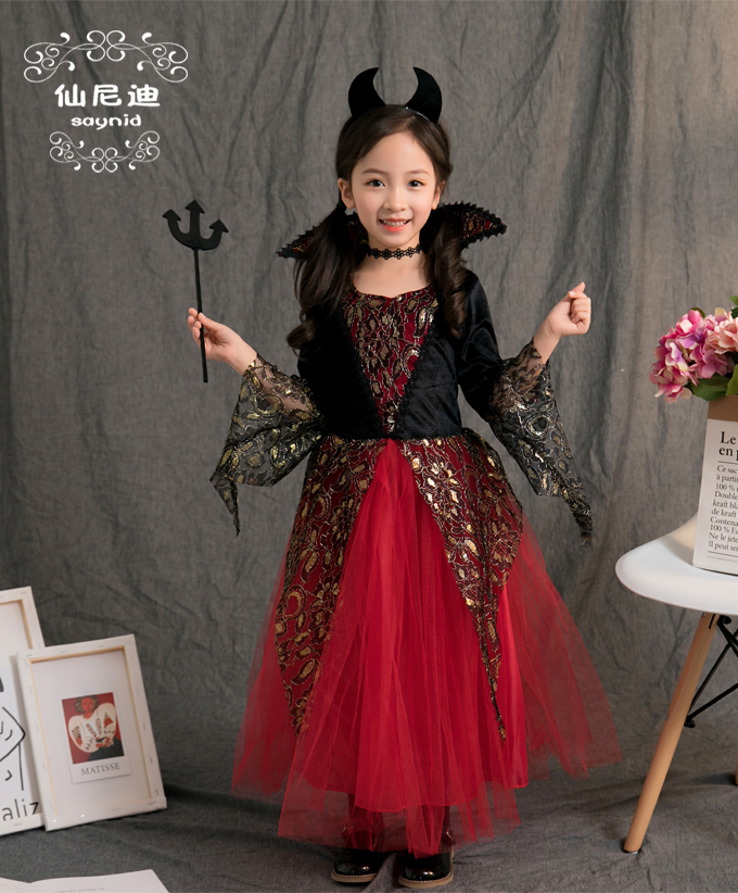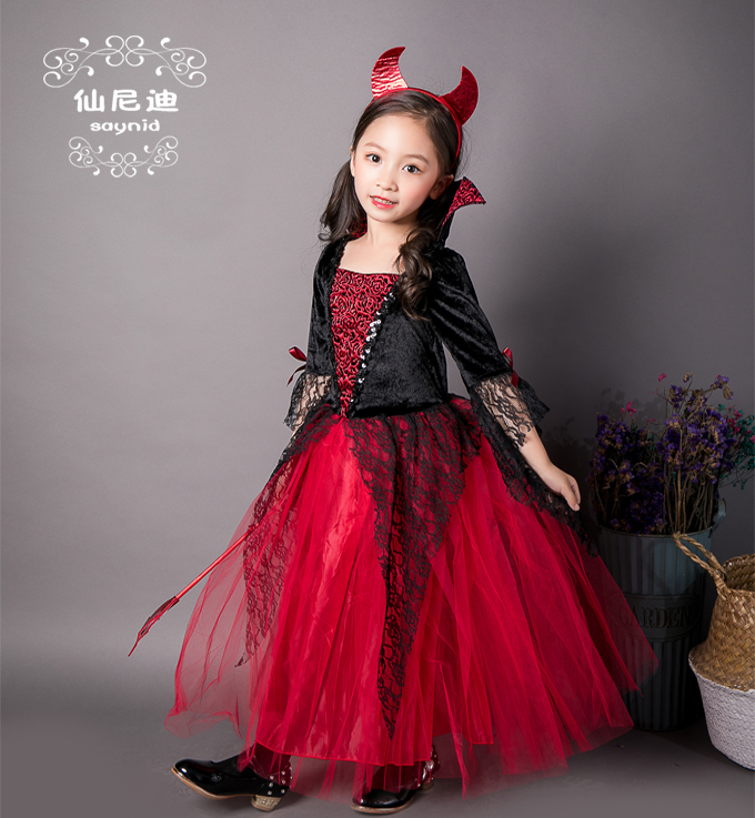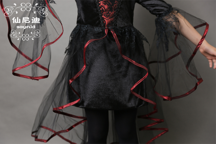 萬圣節兒童服裝女童吸血鬼表演服角色扮演女巫裙子cosplay演出服