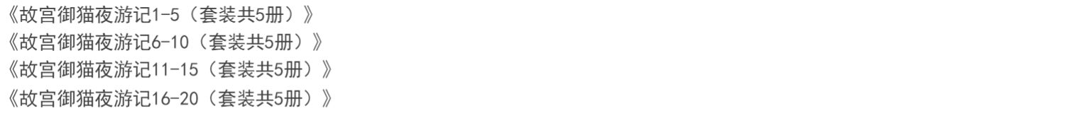17¥ CZ3457 1MzyW09TyI2¥ https://m.tb.cn/h.5getrgo 葫蘆弟弟 故宮御貓夜游記全套15冊 故宮繪本故宮里的大怪獸同作者姐妹篇 6-9-12歲寫給中國孩子的故宮神獸睡前故事書兒童圖畫書 --------------------- 葫蘆弟弟 故宮御貓夜游記全套15冊 故宮繪本故宮里的大怪獸同作者姐妹篇 6-9-12歲寫給中國孩子的故宮神獸睡前故事書兒童圖畫書 --------------------- 眾多明星名作家推薦 故宮里的大怪獸同作者 --------------------- 【原售價】99.5元 【優惠券】10元 【券后價】89.5元。