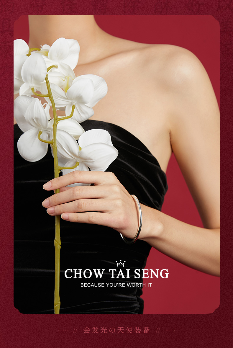 周大生三生三世女古法素圈純銀手鐲