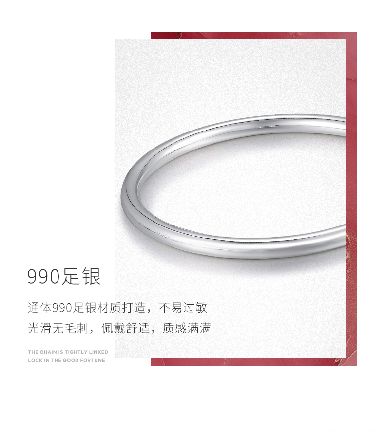 周大生純銀手鐲女簡約年輕款光圈S990足銀鐲子生日禮物送女友