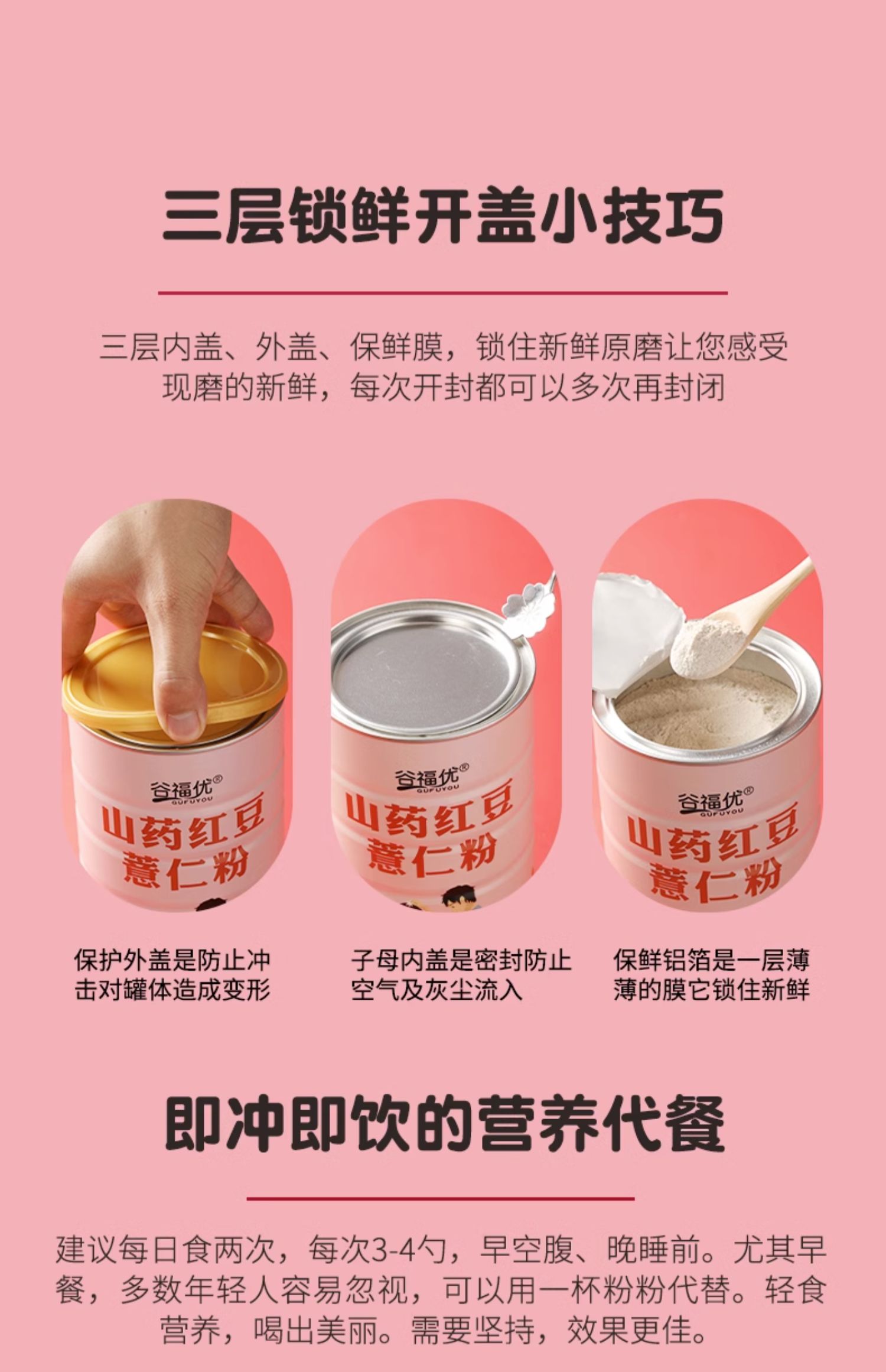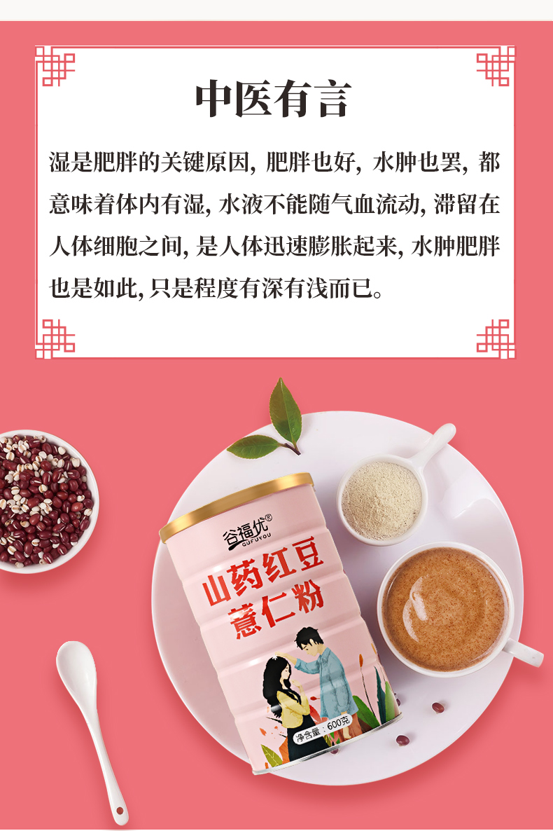 山藥紅豆薏米粉芡實赤小豆薏仁粥去代餐飽腹營養早餐養食品胃濕氣