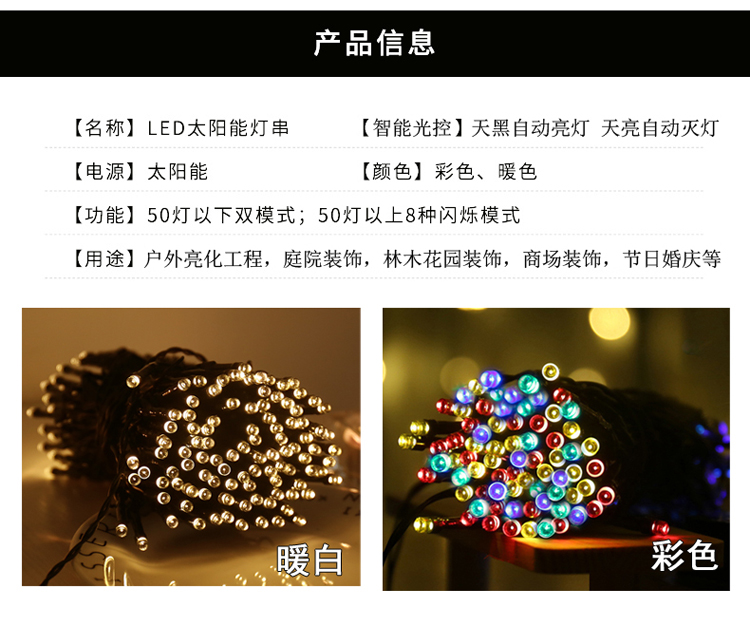 太陽能彩燈帶閃燈串燈滿天星戶外防水七彩閃爍裝飾燈房間庭院變色