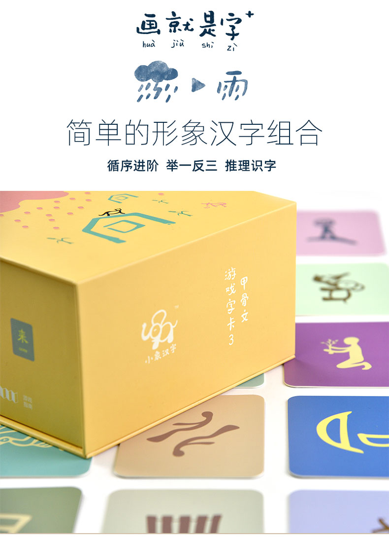 小象漢字甲骨文游戲字卡3看圖識字象形嬰兒顏色認知卡兒童學字字卡幼兒啟蒙幼兒園早教卡片帶圖記憶帶拼音寶寶識字卡6歲人教版5歲