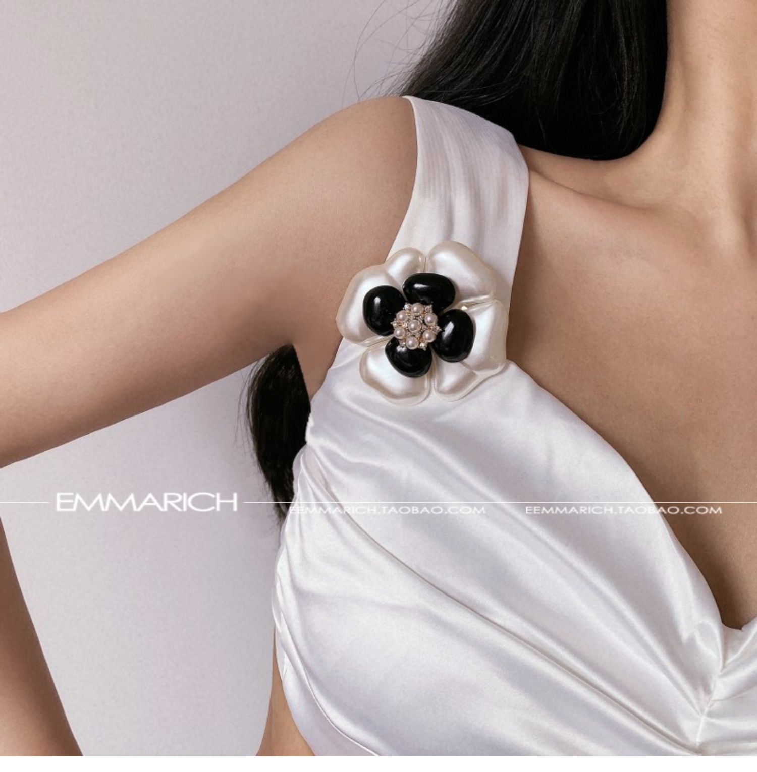 韓國百搭大氣黑色蝴蝶結山茶花胸針