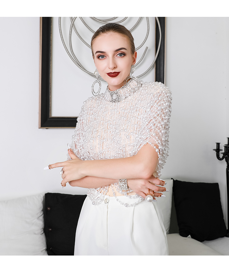 LEEDY新款&ME重手工定制全身珍珠精致自設計帥名媛風酒會宴會女