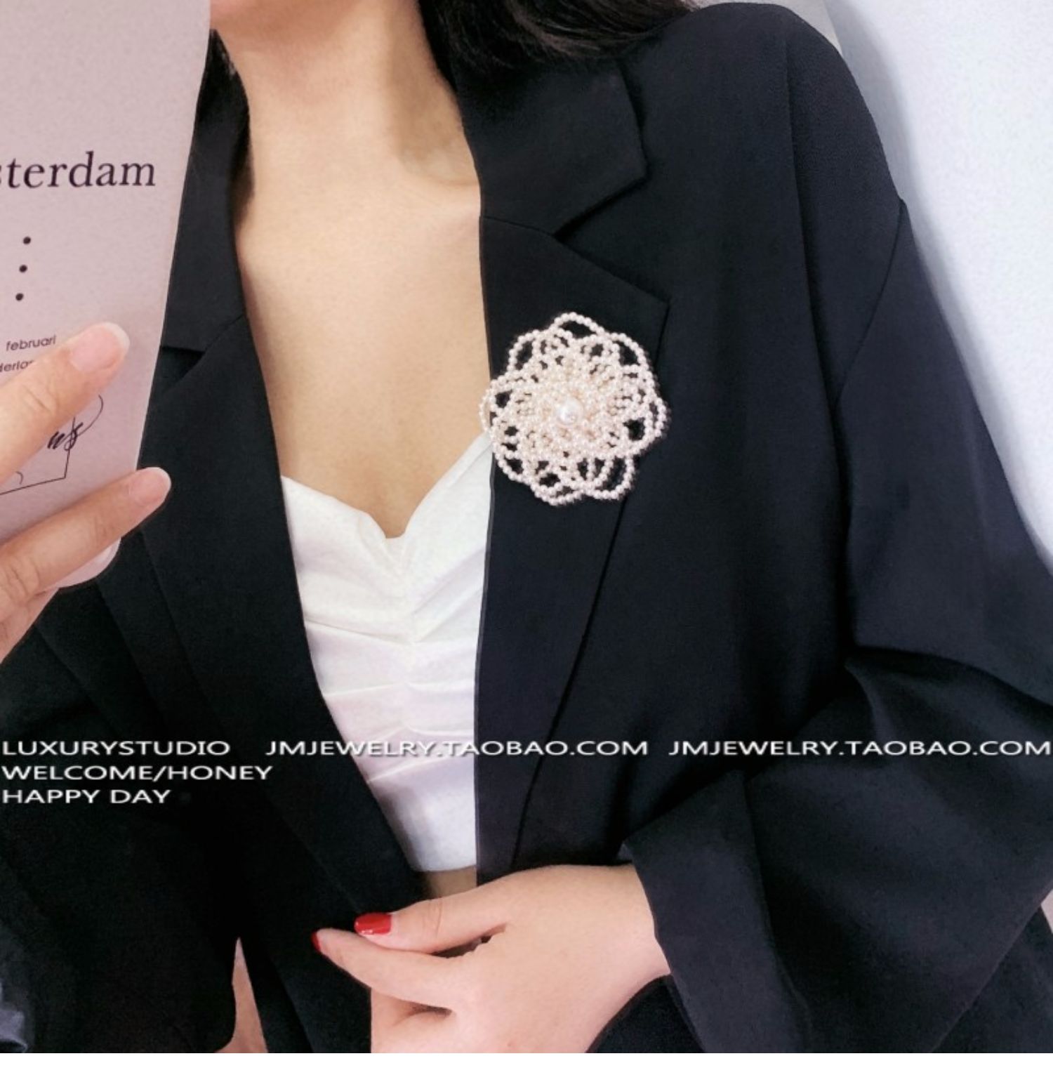 韓國東大門優雅胸針山茶花珍珠潮個性INS高檔女氣質胸花奢華配飾