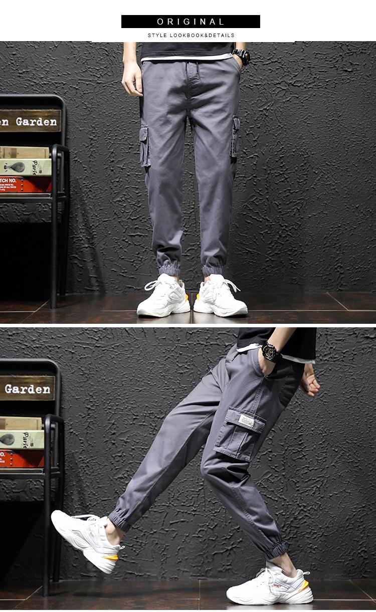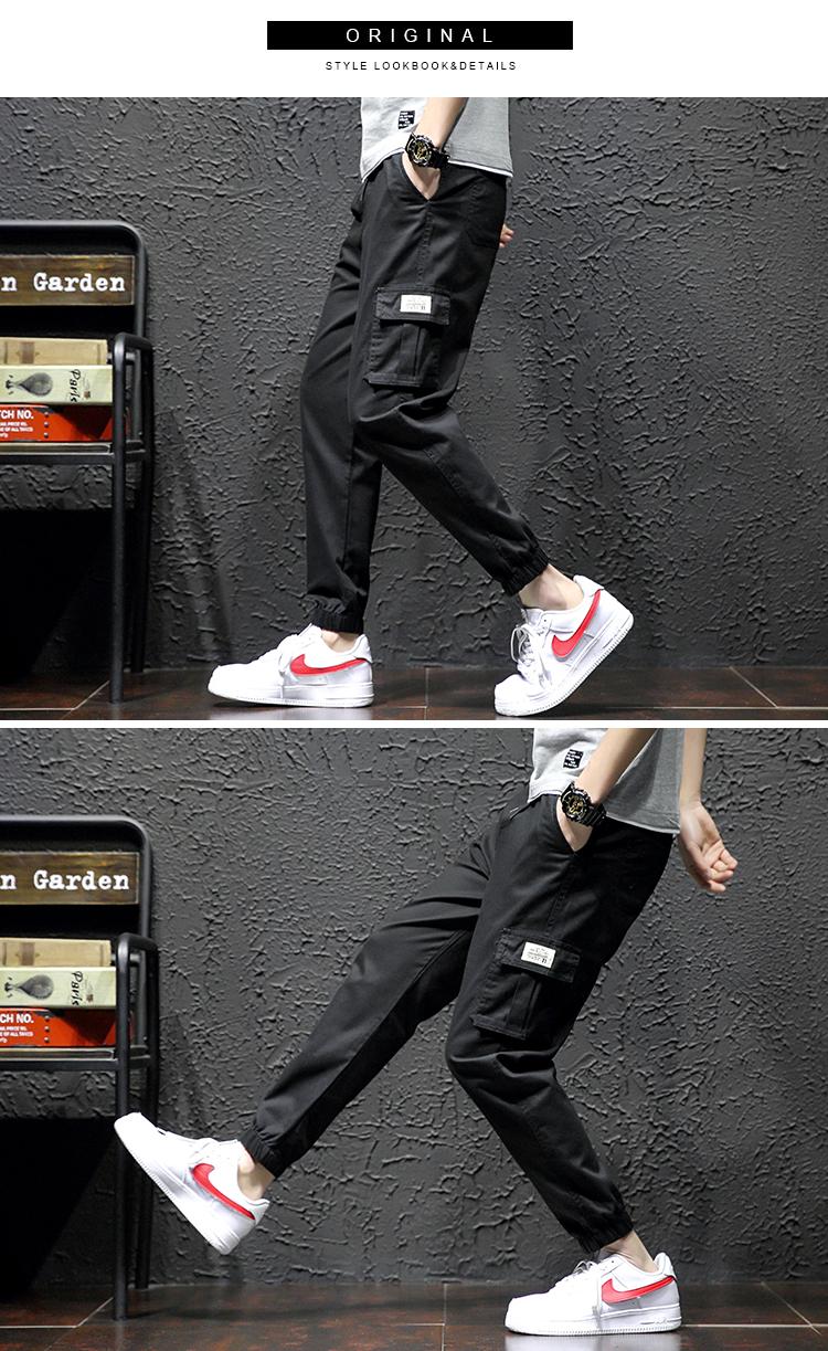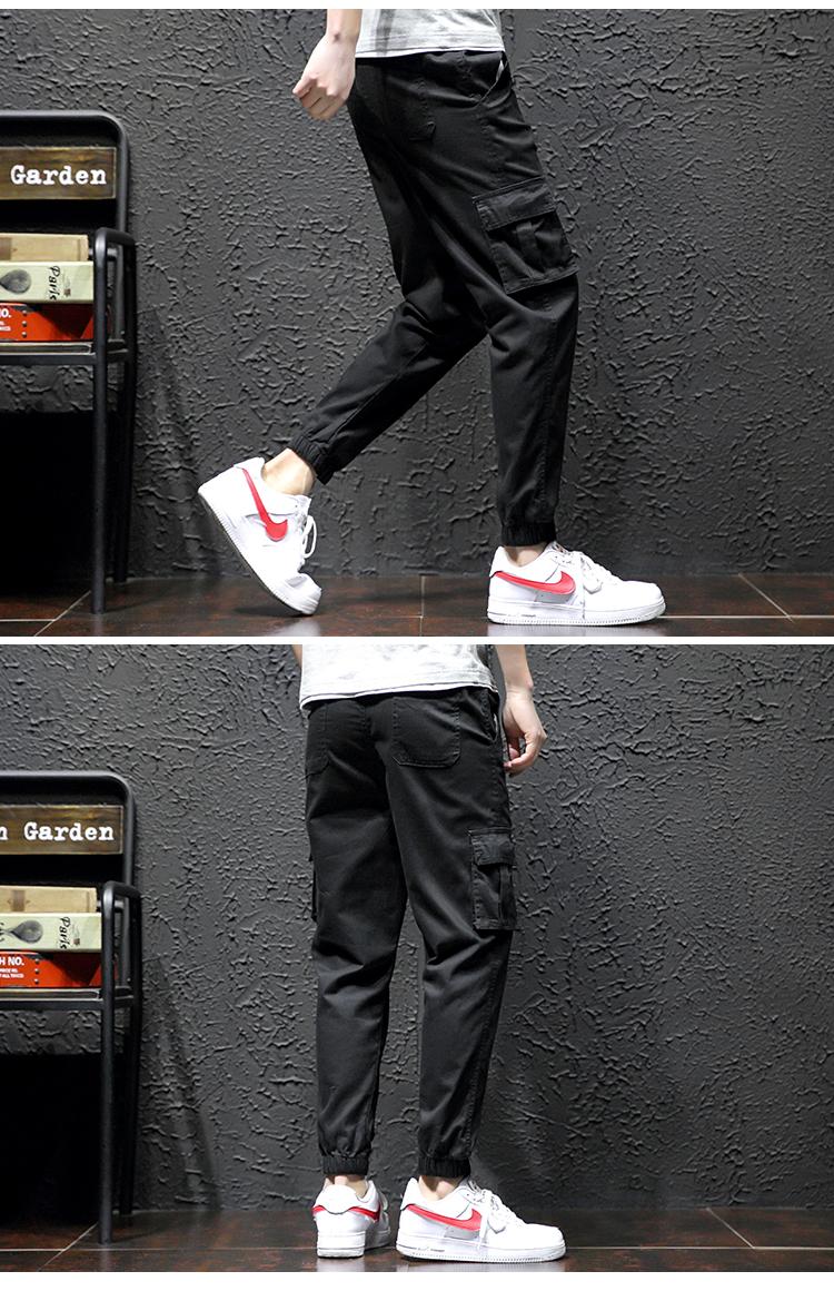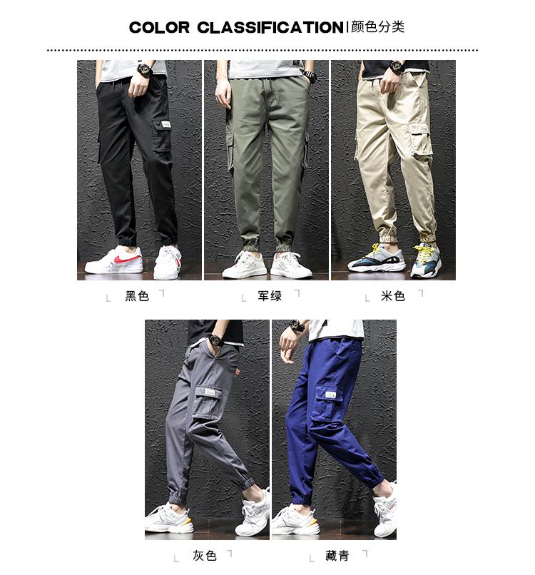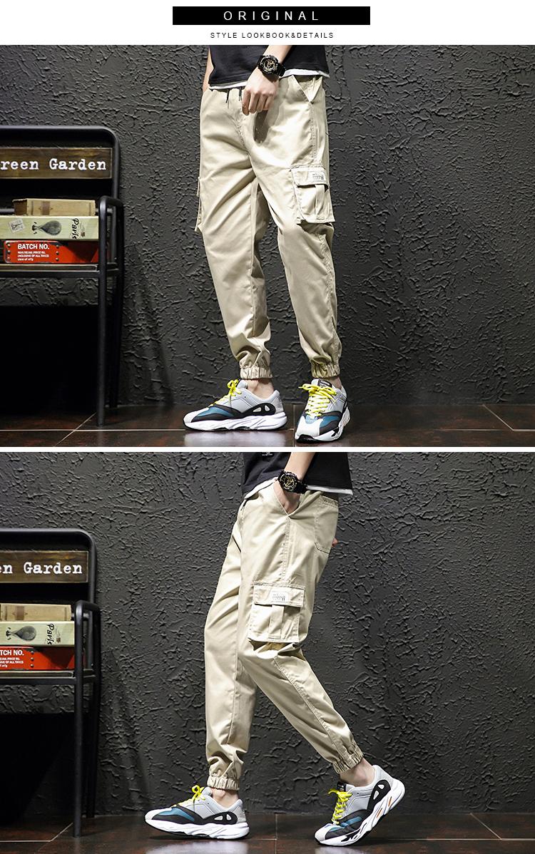 cargo工裝褲男秋季潮牌寬松大碼休閑秋冬加絨束腳卡其色褲子男