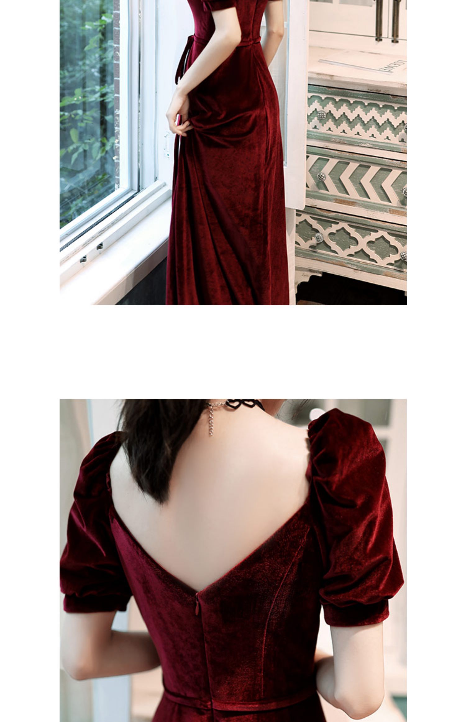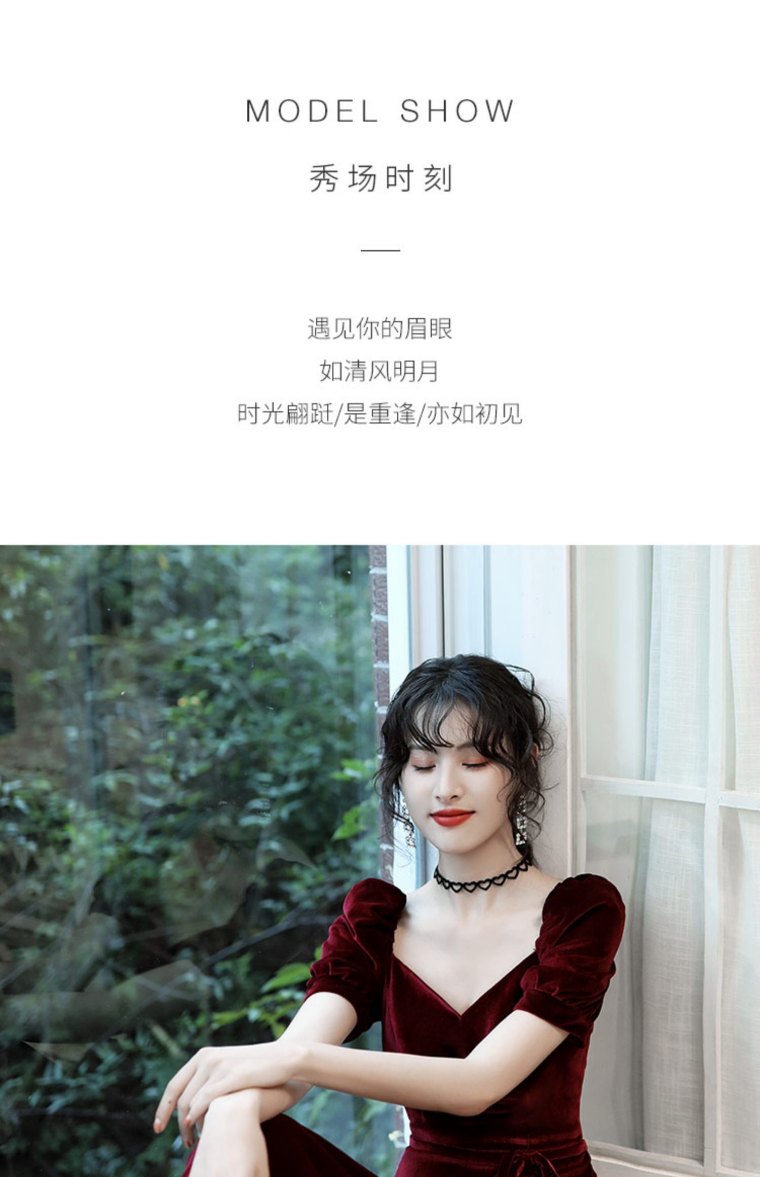 絲絨新娘酒紅色氣質高級感女晚禮服
