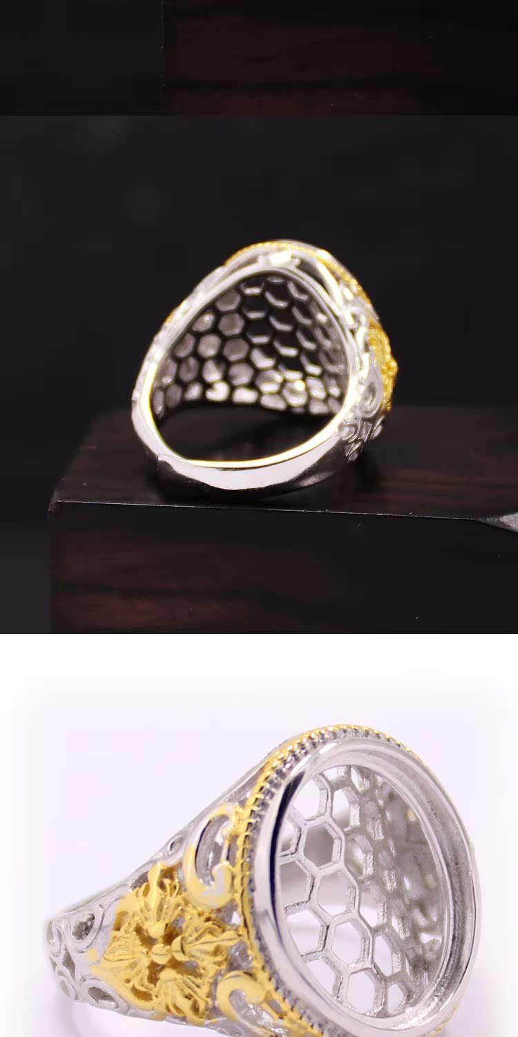 S925純銀戒指空托封底男款鏤空電分色DIY蜜蠟松石玉石鑲嵌托13*16
