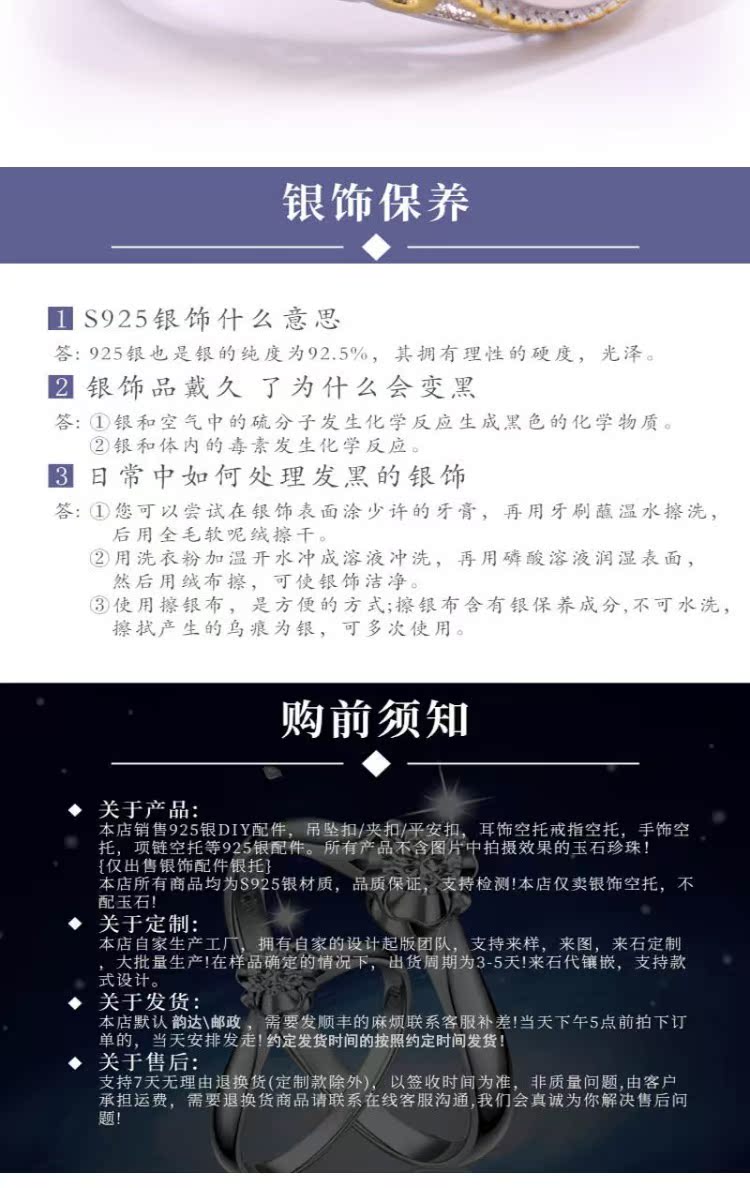 s925純銀戒指空托時尚男款電鍍蜜蠟