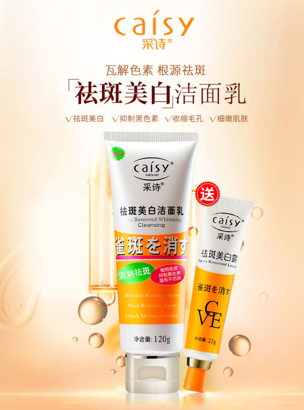 2套采詩祛斑潔面乳補水保濕美白淡斑清潔修護收縮毛孔洗面奶正品