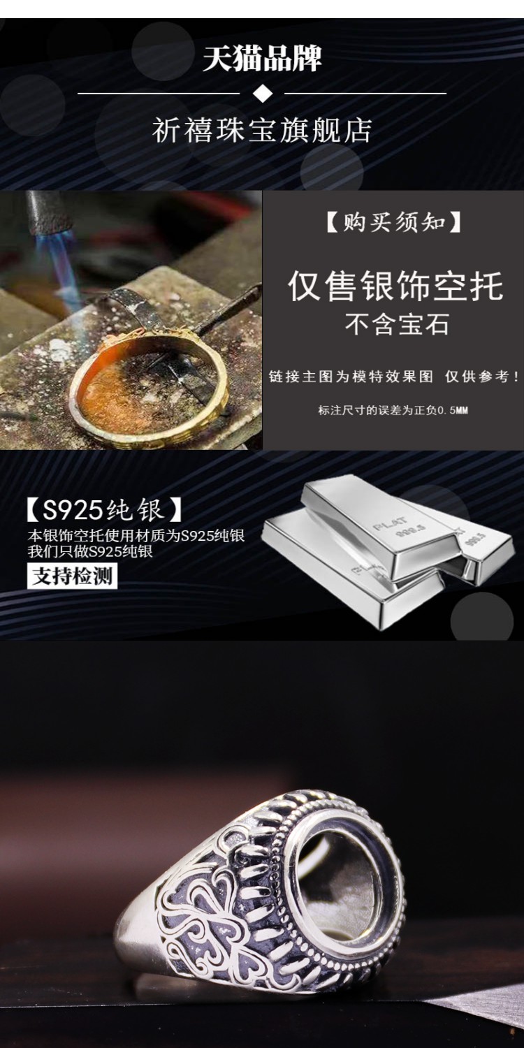 s925純銀戒指空托霸氣男diy 12蜜蠟