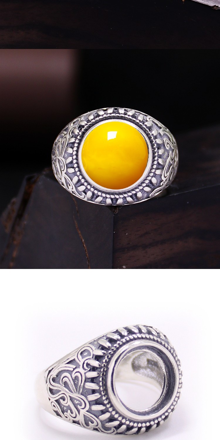 s925純銀戒指空托霸氣男女款12蜜蠟