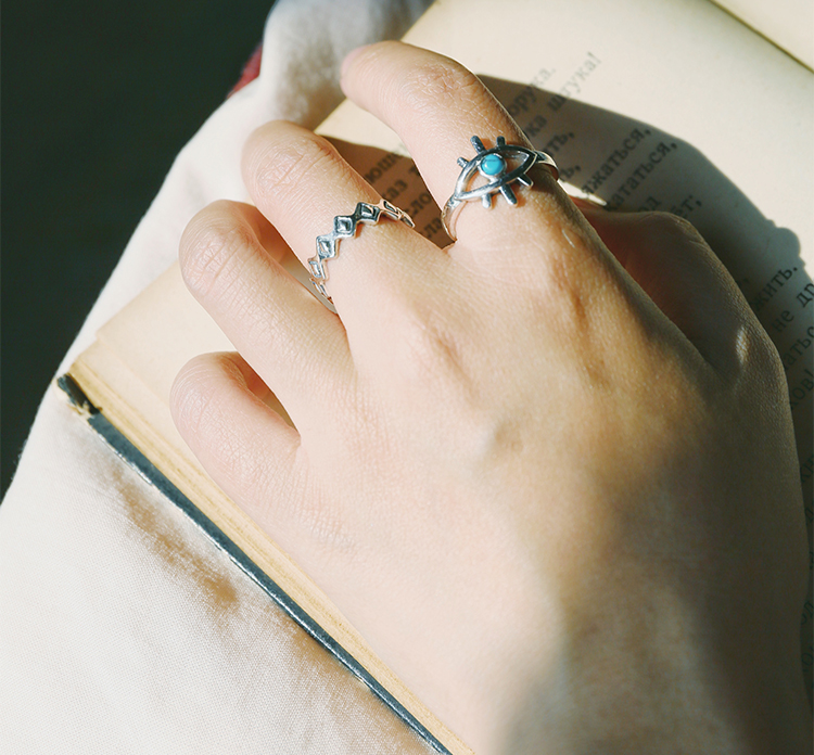 眼睛戒指 Anywhere印度定制925純銀ins綠松石戒指小眾百搭歐美風