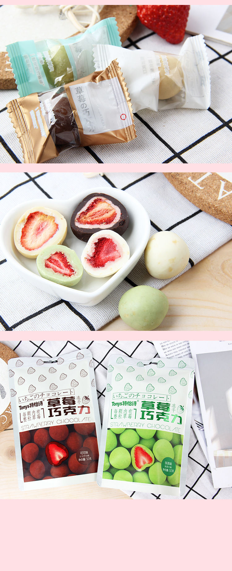 特怡詩整粒凍干草莓巧克力夾心60g/袋 牛奶味抹茶可可味