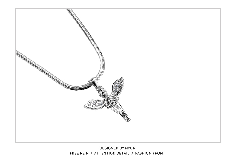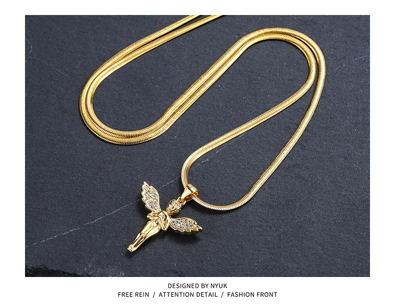 NYUK 潮牌銅鑲鋯石小天使吊墜 嘻哈街頭Hiphop男女款蛇骨項鏈飾品