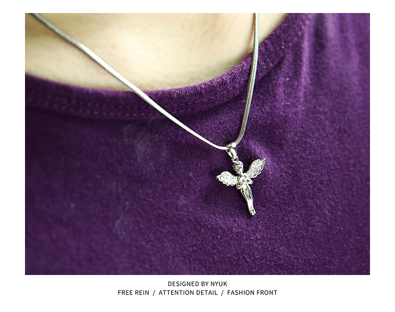潮牌鈦鋼小天使吊墜ins男士嘻哈酷