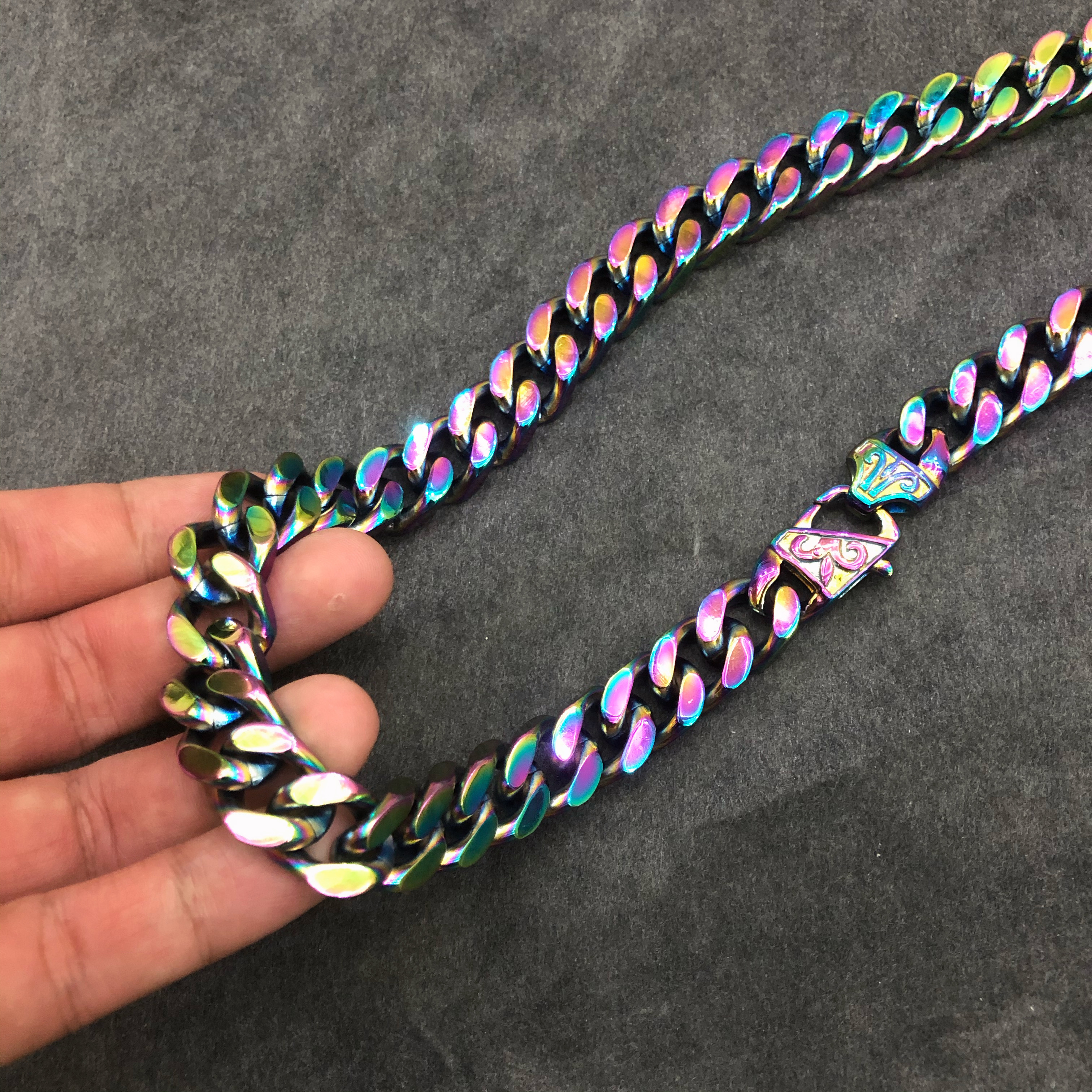 15MM男女同款淬火彩色鈦鋼古巴項鏈嘻哈短款鎖骨鏈cuban chain