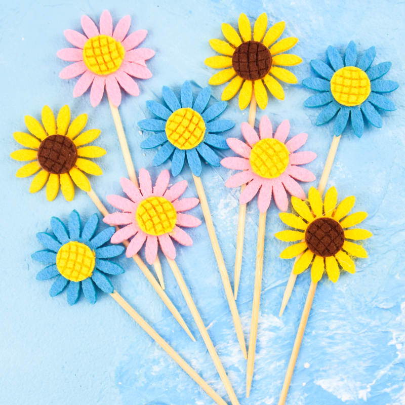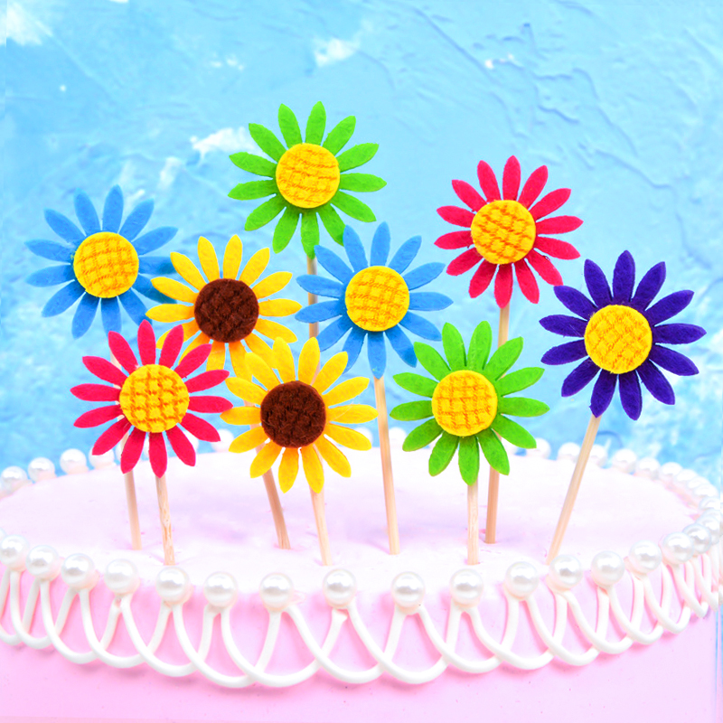向日葵生日蛋糕裝飾插牌小雛菊太陽花朵兒童周歲蛋糕插件花瓣插旗