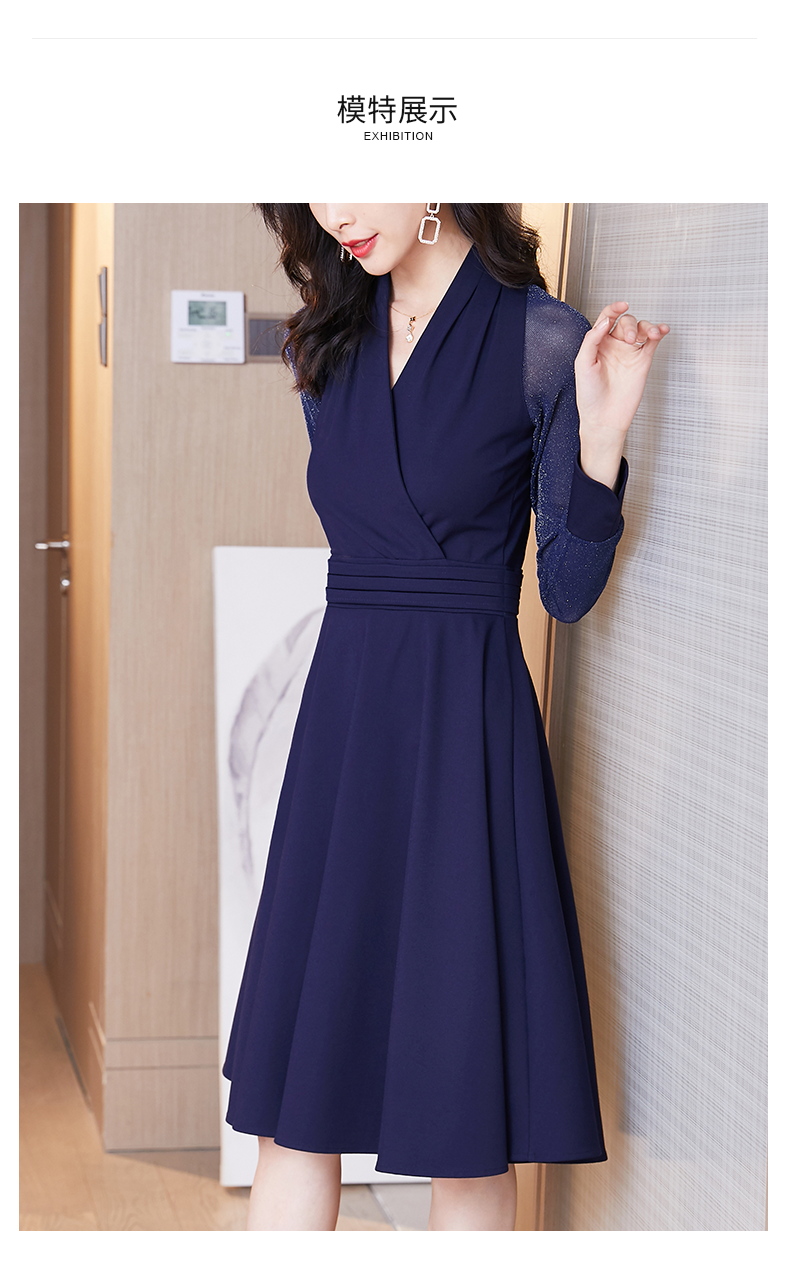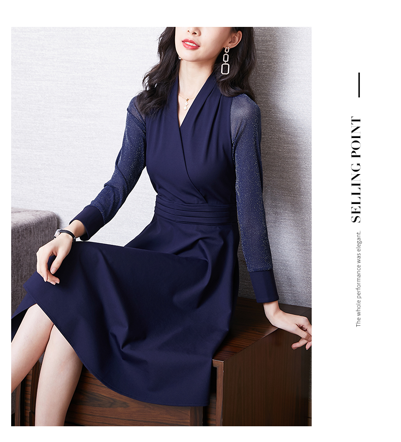 連衣裙女秋裝新款2022年裙子輕奢高端藏青色中長款氣質收腰顯瘦裙