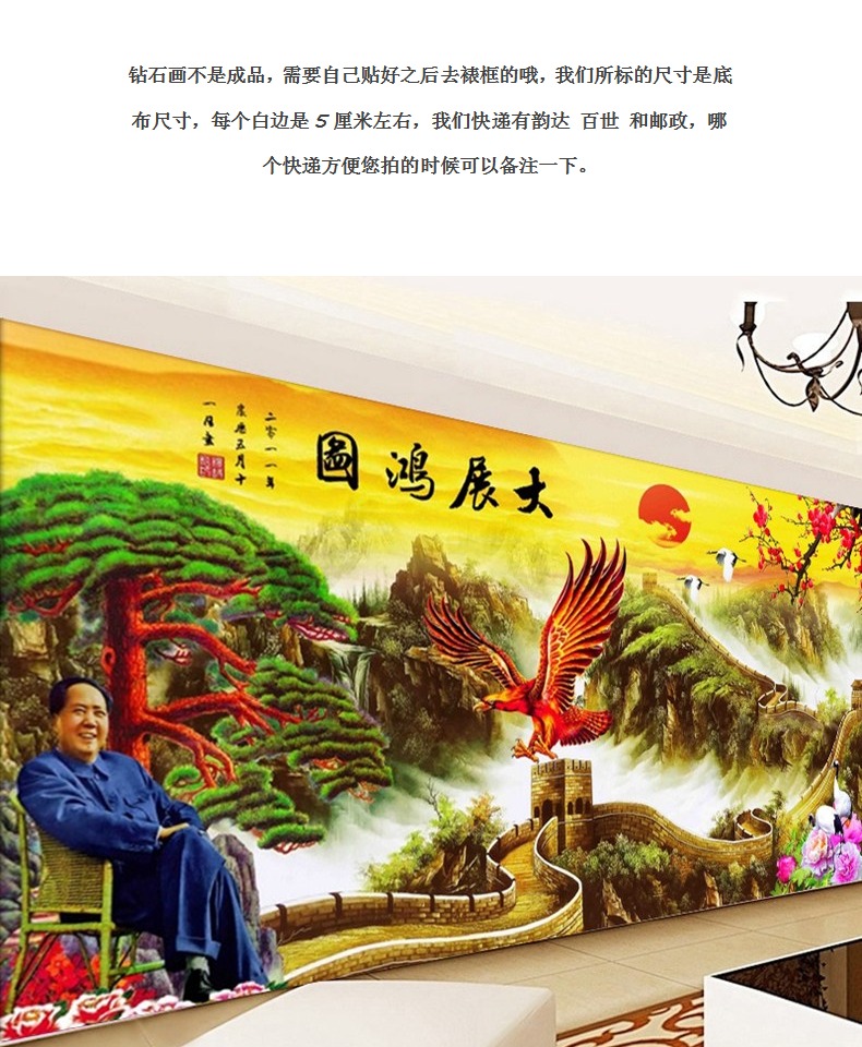--------------------- 鉆石畫毛主席毛澤東鉆石繡客廳大展宏圖長城圓鉆滿鉆貼鉆十字繡 --------------------- 正品保證/多40%鉆量/不掉鉆/送全套工具包 --------------------- 【原售價】85元 【優惠券】3元 【券后價】82元。