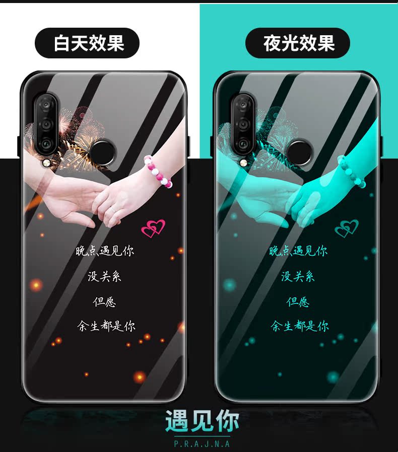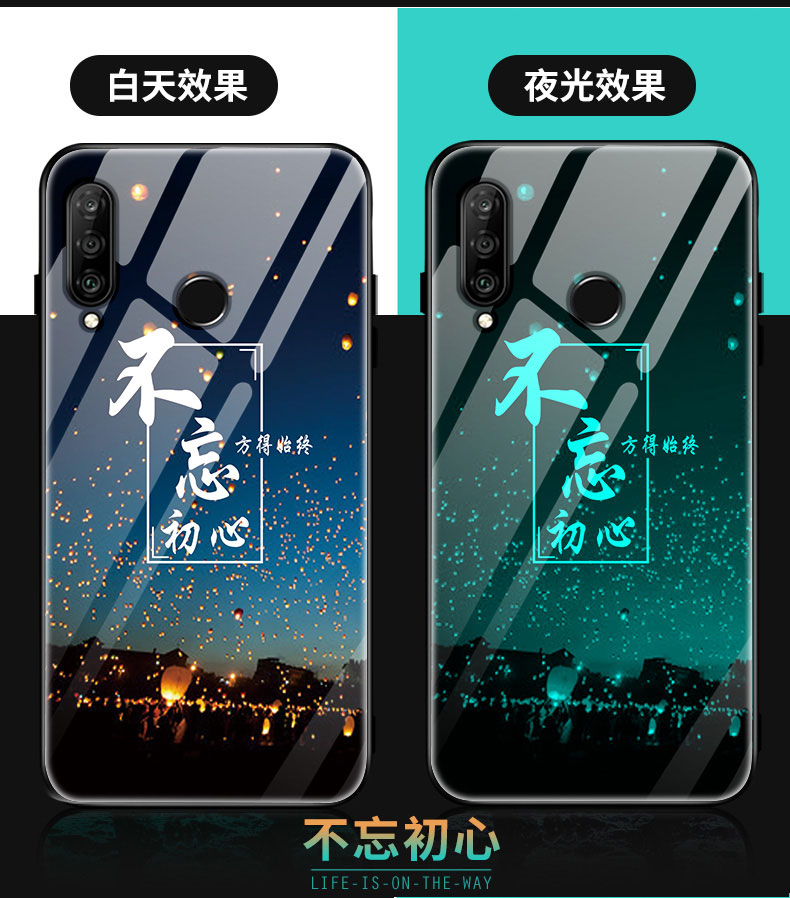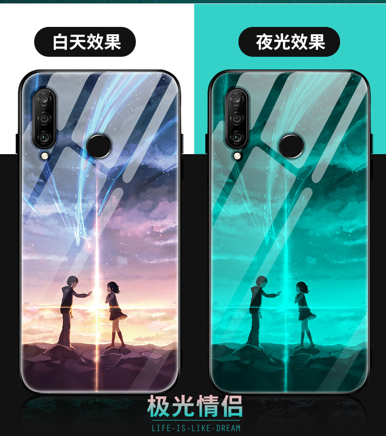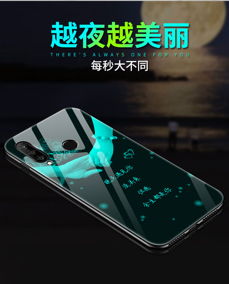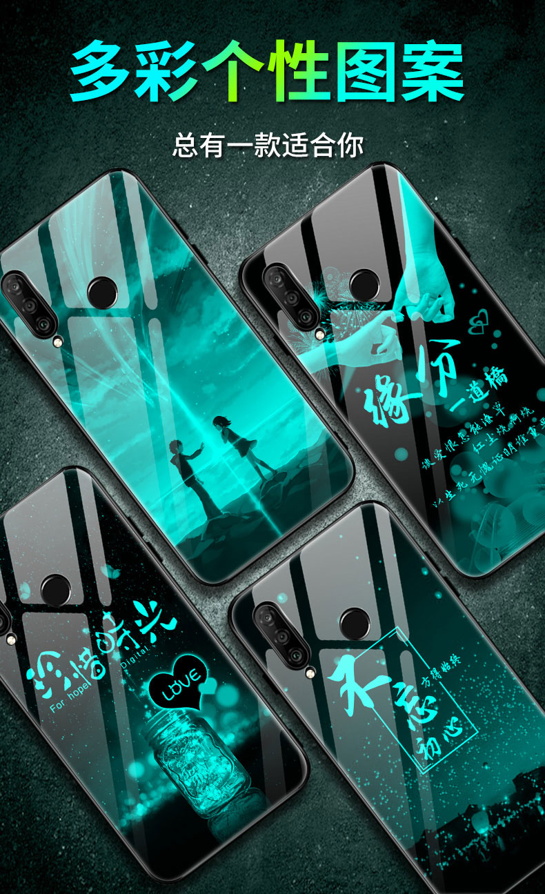 華為nova4e手機殼huawei nove4E夜光鏡面MAR-AL00玻璃套nova4e防摔軟邊全包硅膠p30lite男女新款個性創意時尚