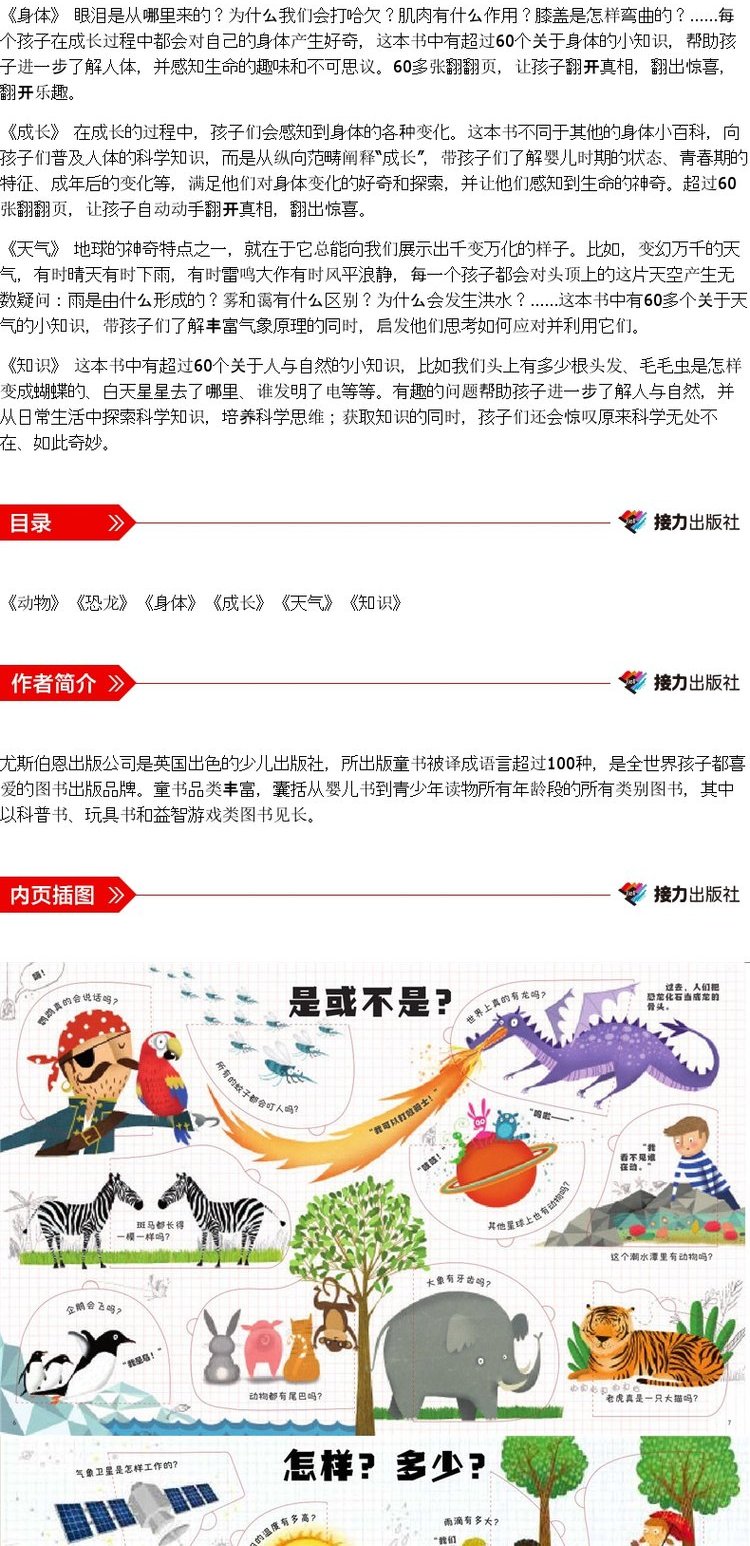 58¥ CZ3457 HD4fW13zapL¥ https://m.tb.cn/h.5hc4LjW 【接力出版社直營】尤斯伯恩你問我答科普翻翻書W系列第2輯 精裝彩色插圖1到3歲兒童科普繪本圖畫寶寶小百科親子互動早教閱讀書籍 --------------------- 【接力出版社直營】尤斯伯恩你問我答科普翻翻書W系列第2輯 精裝彩色插圖1到3歲兒童科普繪本圖畫寶寶小百科親子互動早教閱讀書籍 --------------------- 套裝全6冊 --------------------- 【原售價】174元 【優惠券】10元 【券后價】164元。