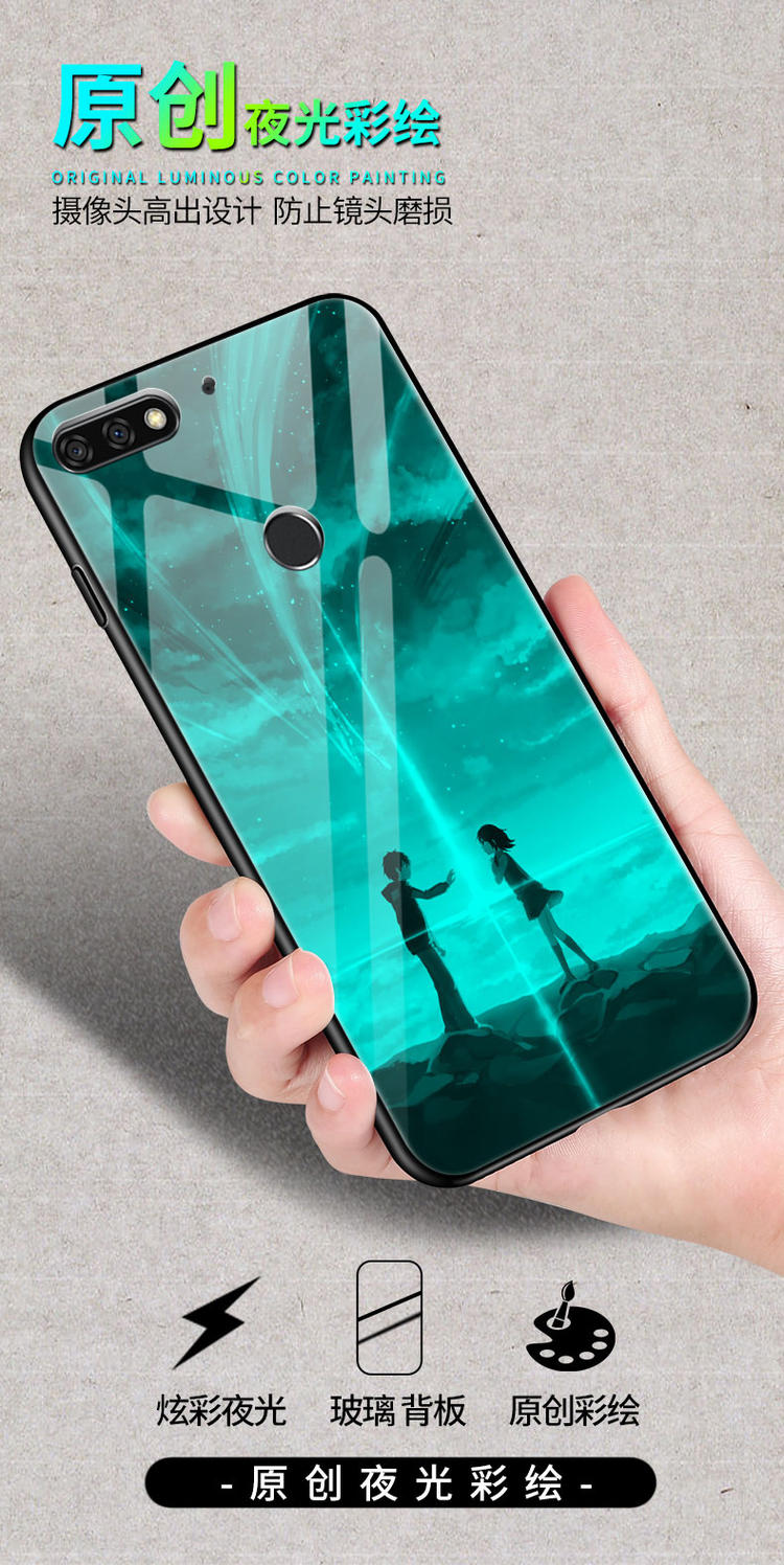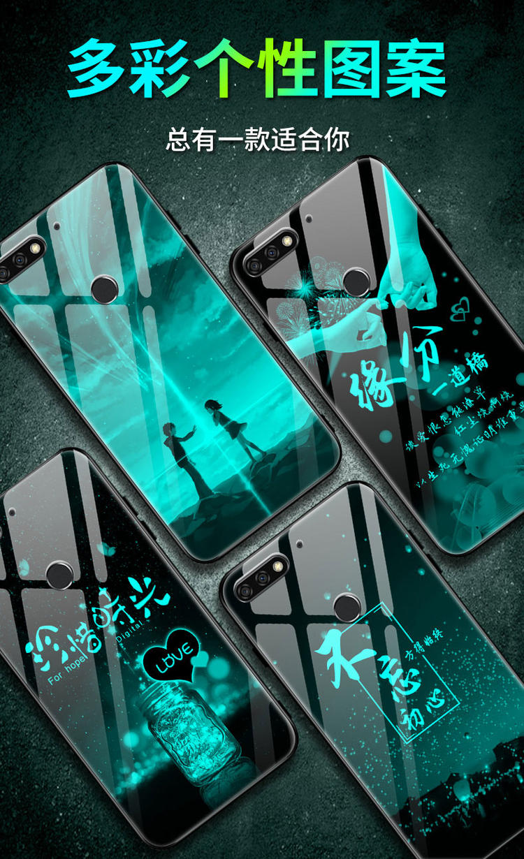 華為榮耀暢玩7C手機殼Huawei 化為LND-AL30玻璃套honor7c硅膠防摔huawei 榮譽暢完7c夜光hw榮耀7c潮男女個性