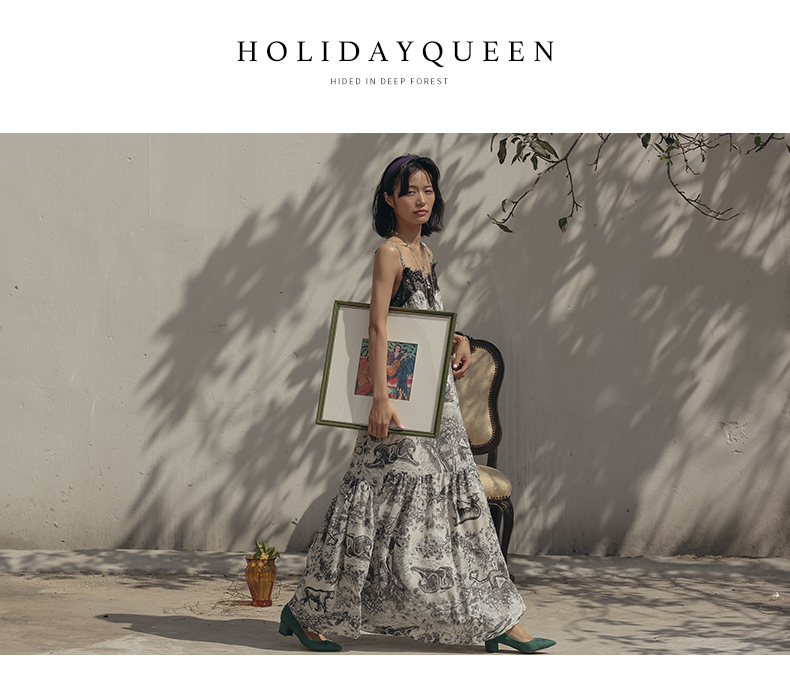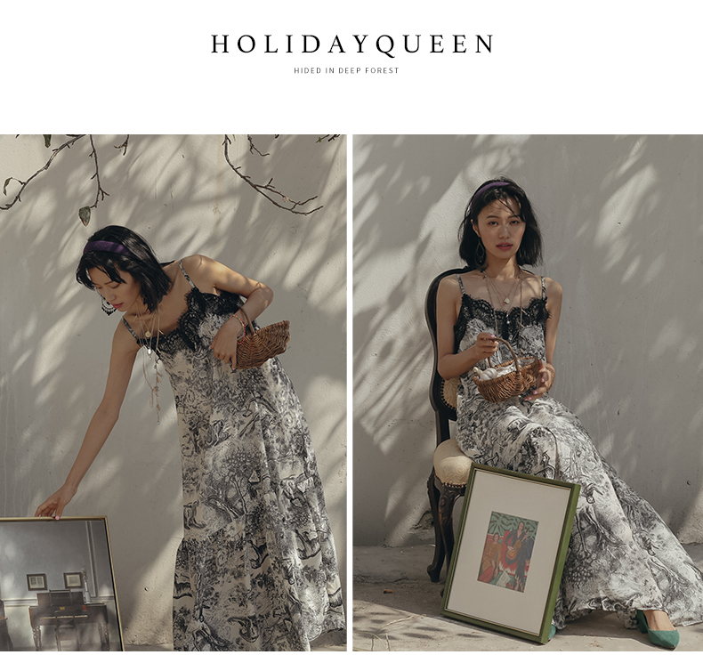 HolidayQueen海邊度假風法式復古吊帶連衣裙女吊帶裙長裙沙灘裙