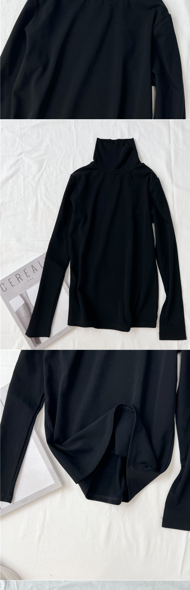 元熙冬款半領磨毛絨打底衫基礎款修身顯瘦中高領純色保暖內搭上衣