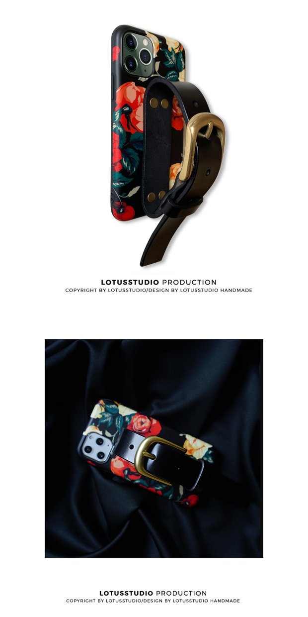 原創法式古董玫瑰iphone11 pro/max手機殼牛皮銅扣皮帶歐美新款