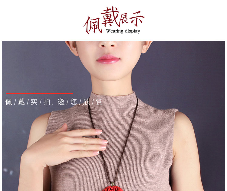 復古長款可調節紅色花朵秋冬毛衣鏈