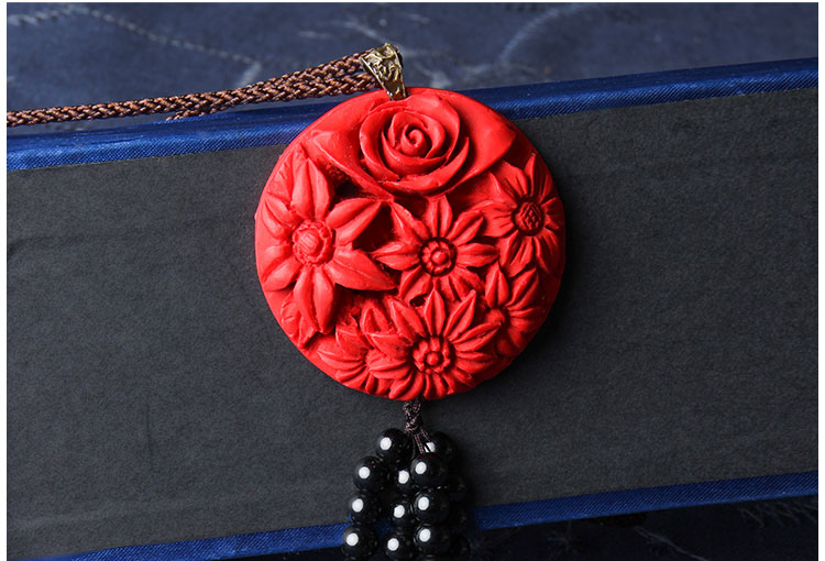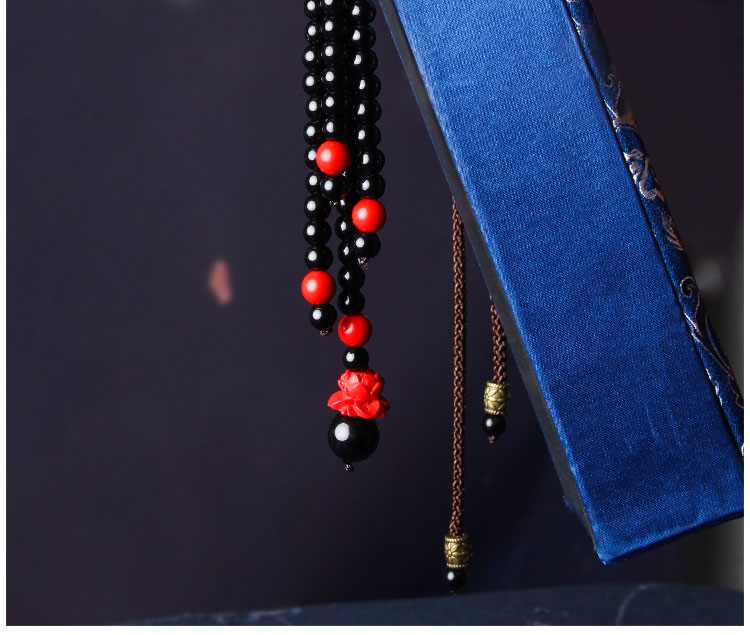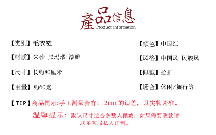 民族風毛衣鏈項鏈裝飾品紅色吊墜漆雕黑瑪瑙流蘇長款復古大氣掛件