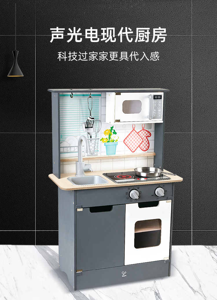 Hape廚房聲光電男女孩過家家益智仿真做飯玩具木制3歲+生日禮物