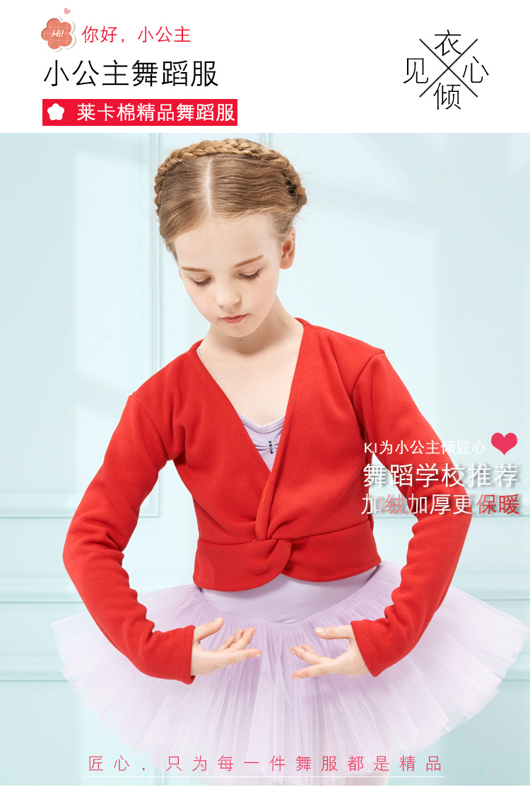 舞蹈服兒童女童練功服披肩長袖秋冬季加絨加厚幼兒芭蕾裙外套外搭