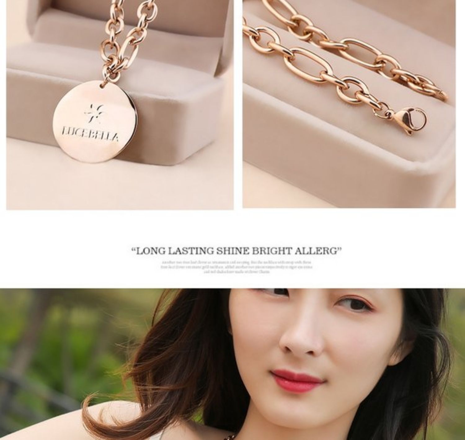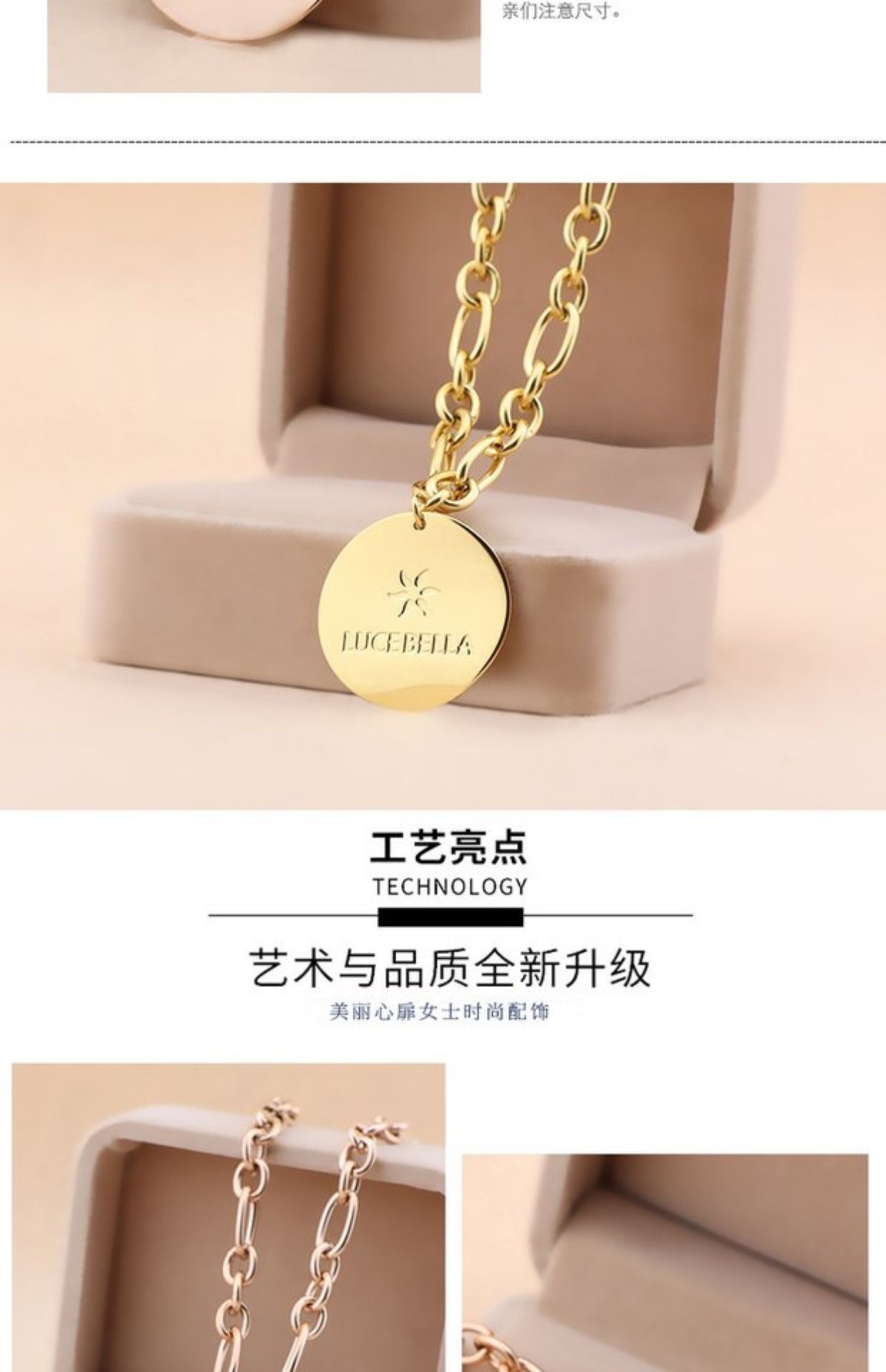 鈦鋼玫瑰金復古圓牌項鏈女小眾設計感小福牌鎖骨毛衣鏈子配飾網紅