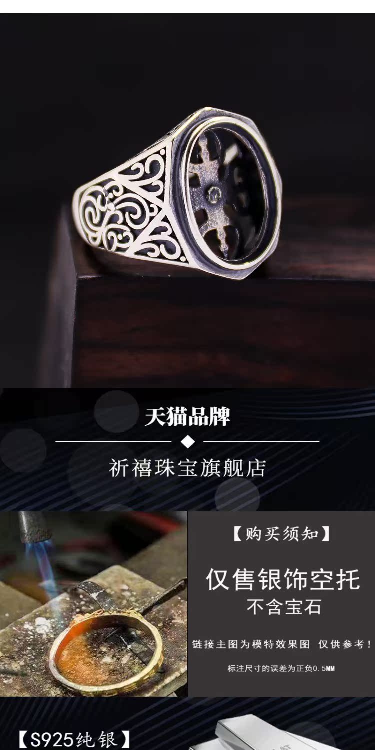 s925純銀戒指空托霸氣男diy 12蜜蠟