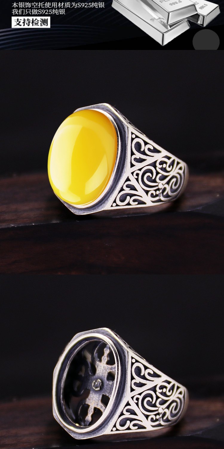 s925純銀戒指空托霸氣男女款12蜜蠟