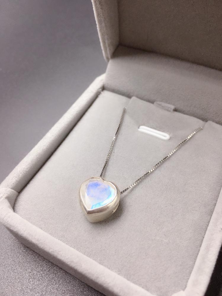 尼泊爾手工純銀月光石吊墜毛衣鏈