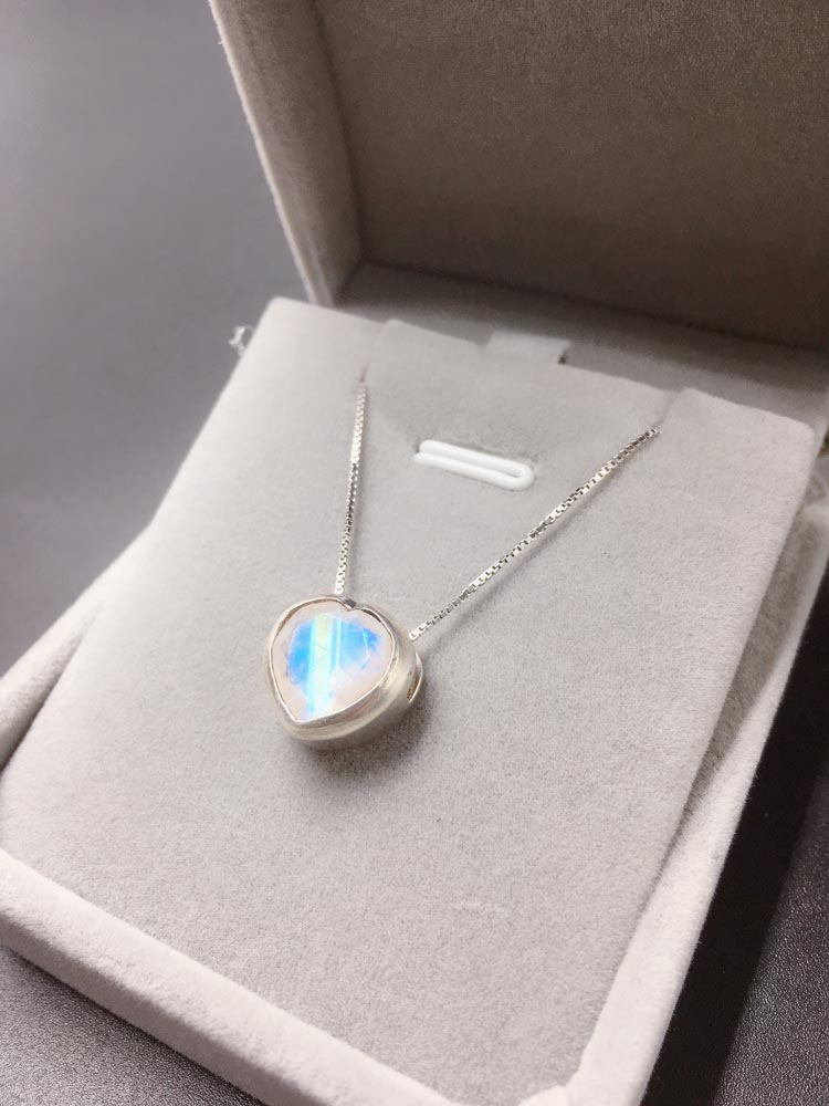 尼泊爾手工真銀飾品藍月光石榴石黃水晶吊墜女時尚簡約鎖骨鏈送禮