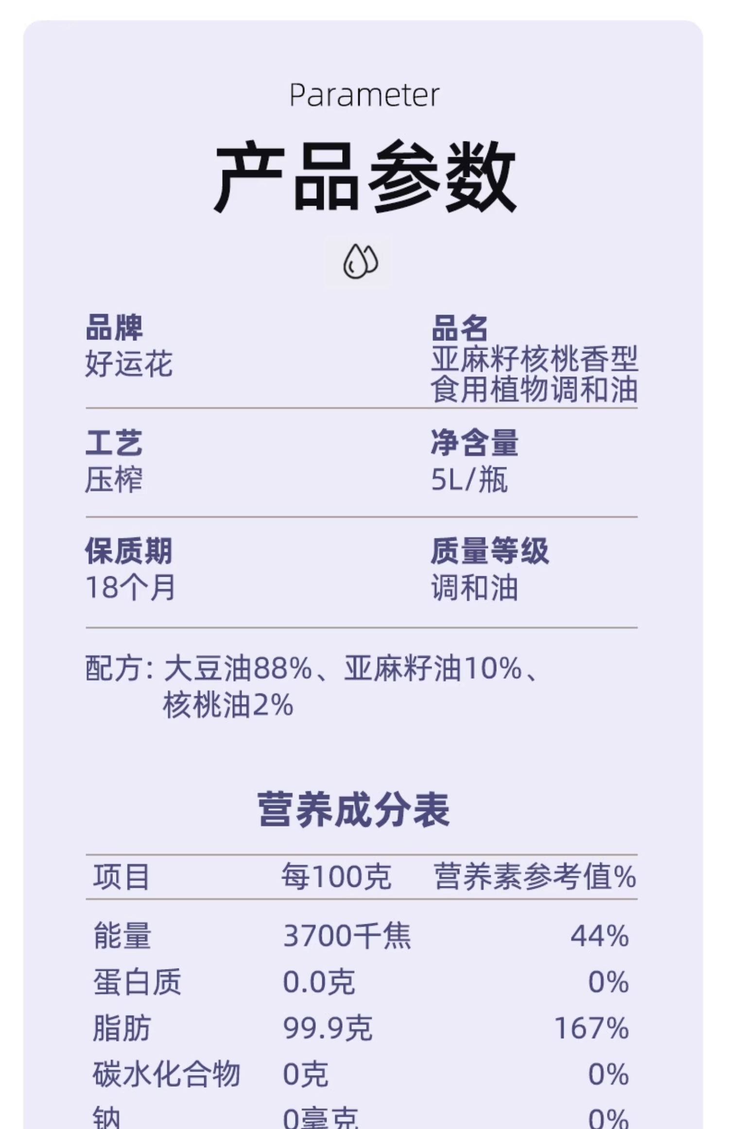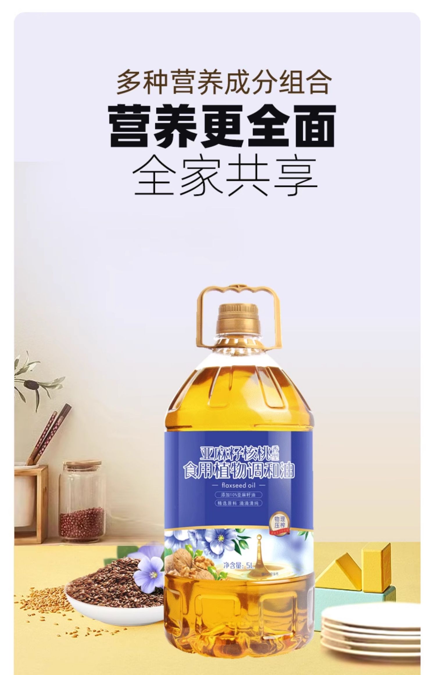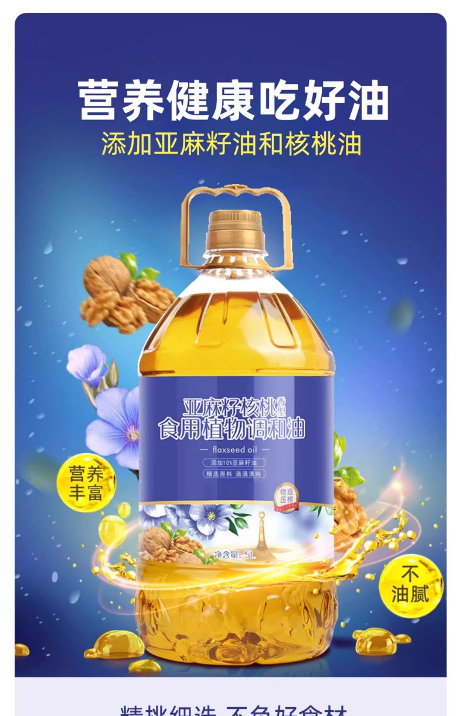 亞麻籽核桃食用油5L亞麻籽油食用植物調和油大桶裝家用炒菜色拉油