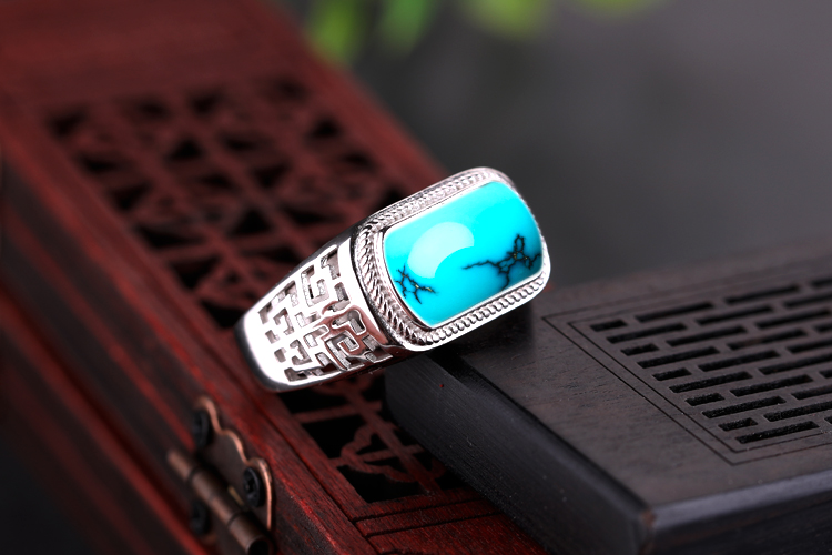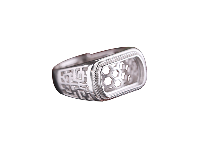 s925空托男光面鑲嵌蜜蠟南紅銀戒指