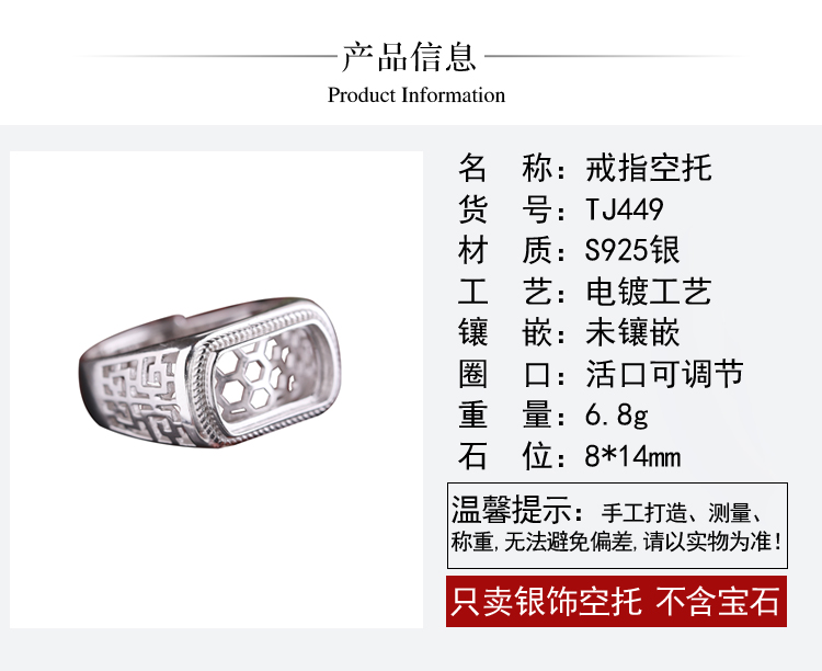 馬鞍托S925純銀戒指空托鑲嵌蜜蠟綠松石墨玉翡翠馬鞍戒面戒托8*14
