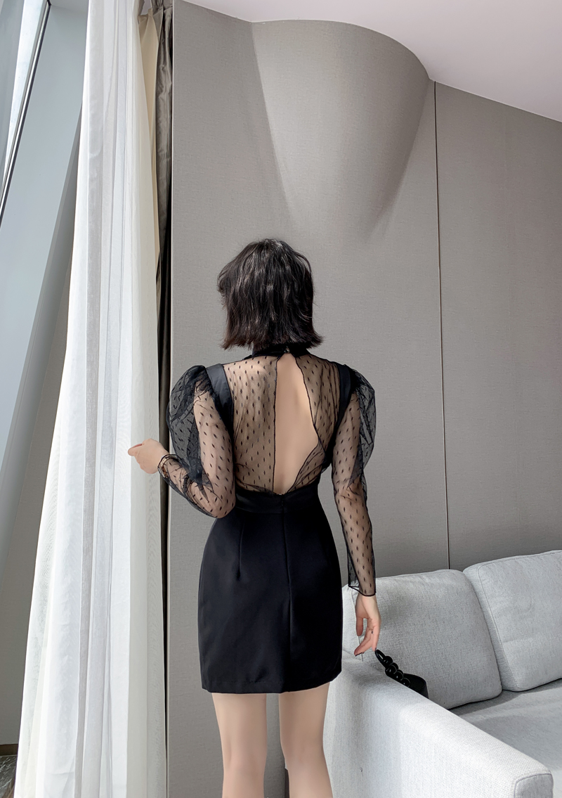 黑色年會輕奢小眾高端絲絨小晚禮服