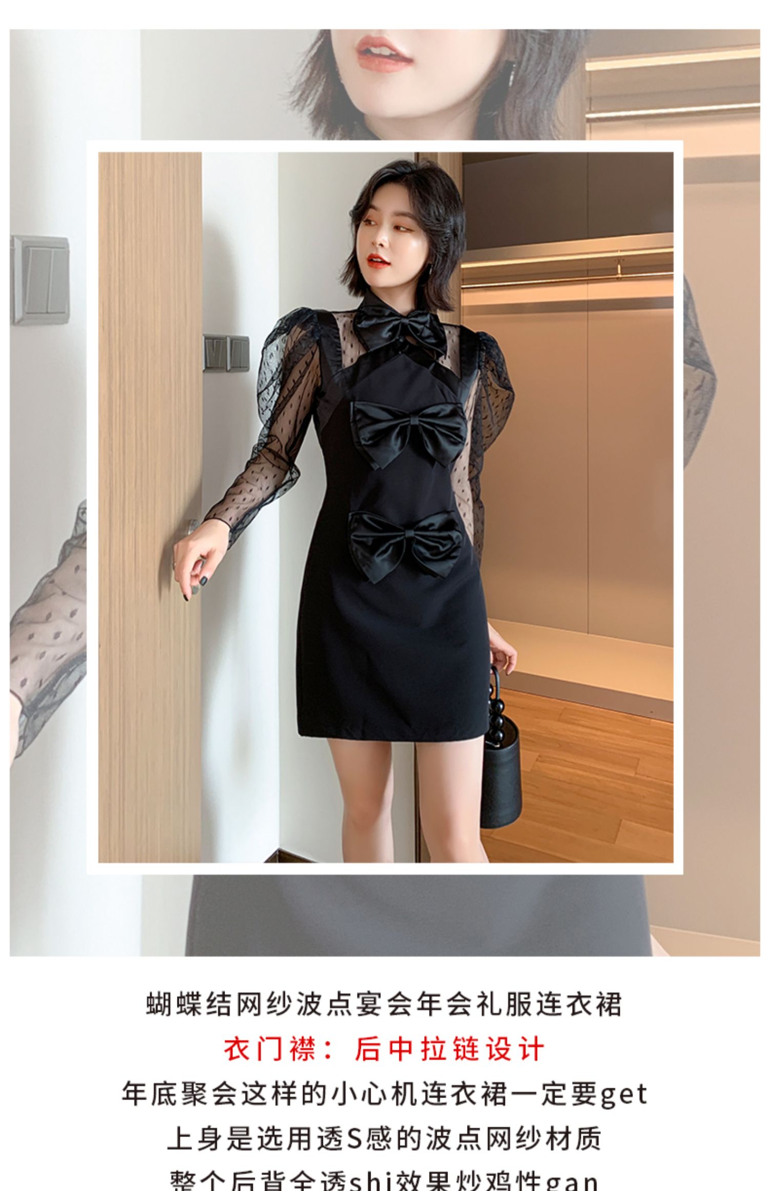 黑色高級感法式輕奢絲絨秋季晚禮服